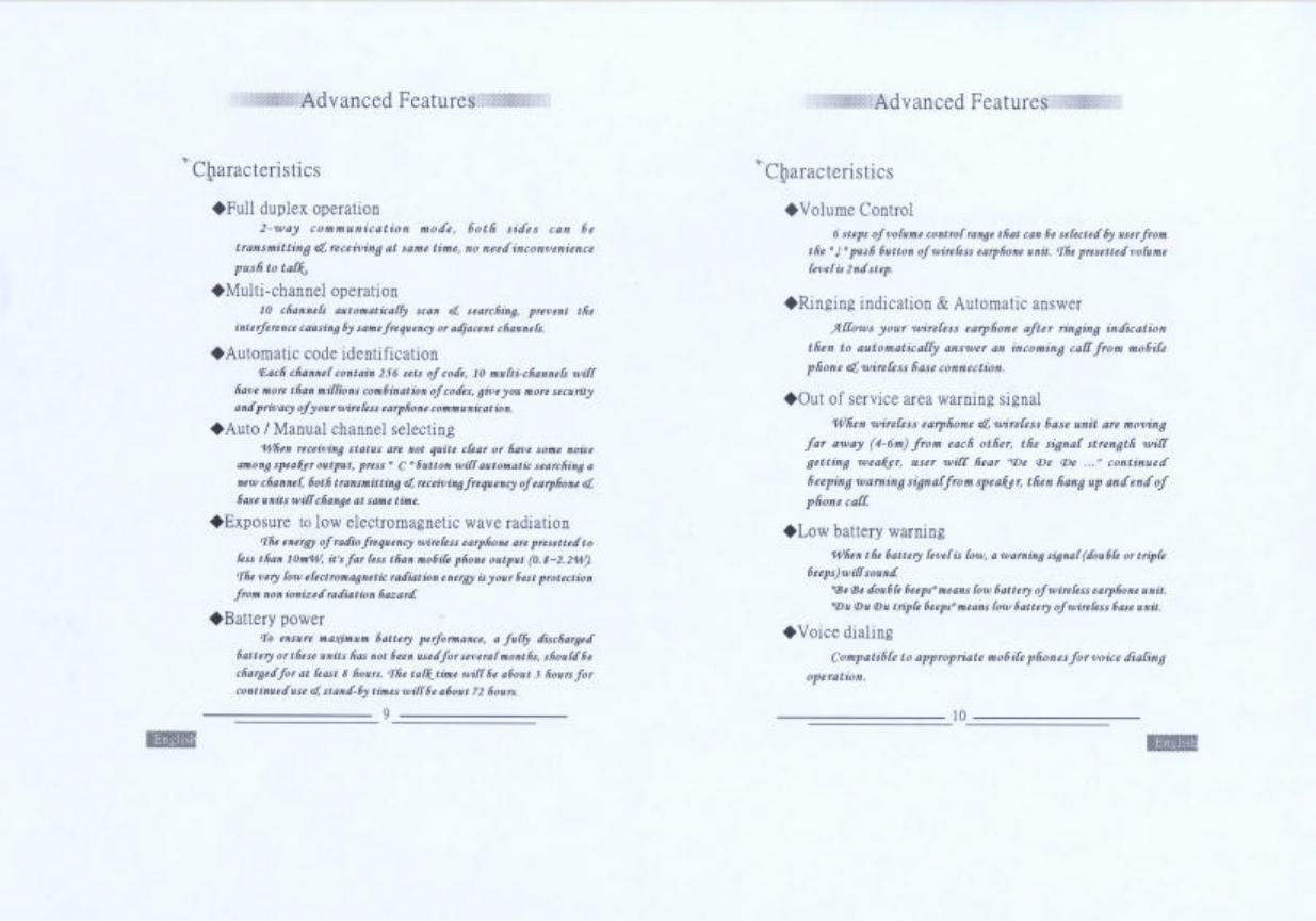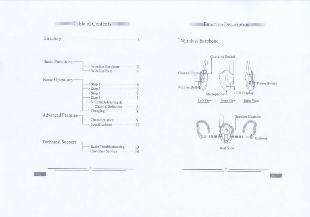 Super Device Microelectronics SD-200WE-1 Wireless Earphone Handset User Manual users manual