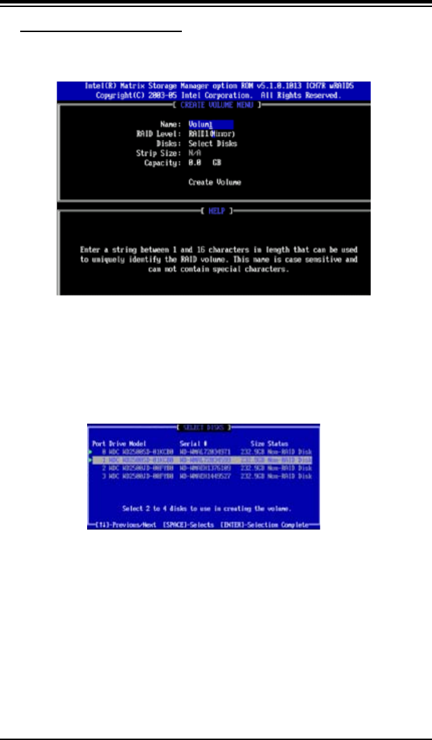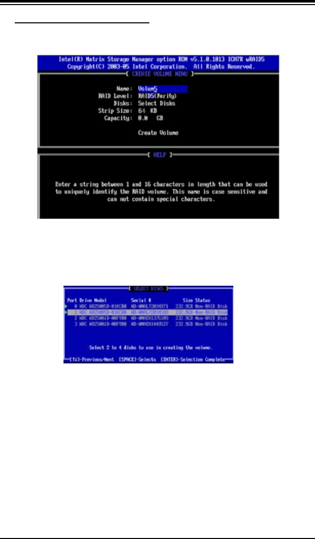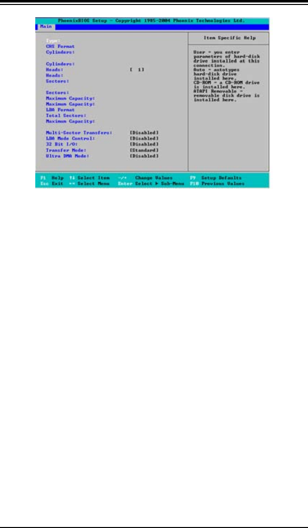 2. Select the desired disk and press <Enter>. The following screen appears:
