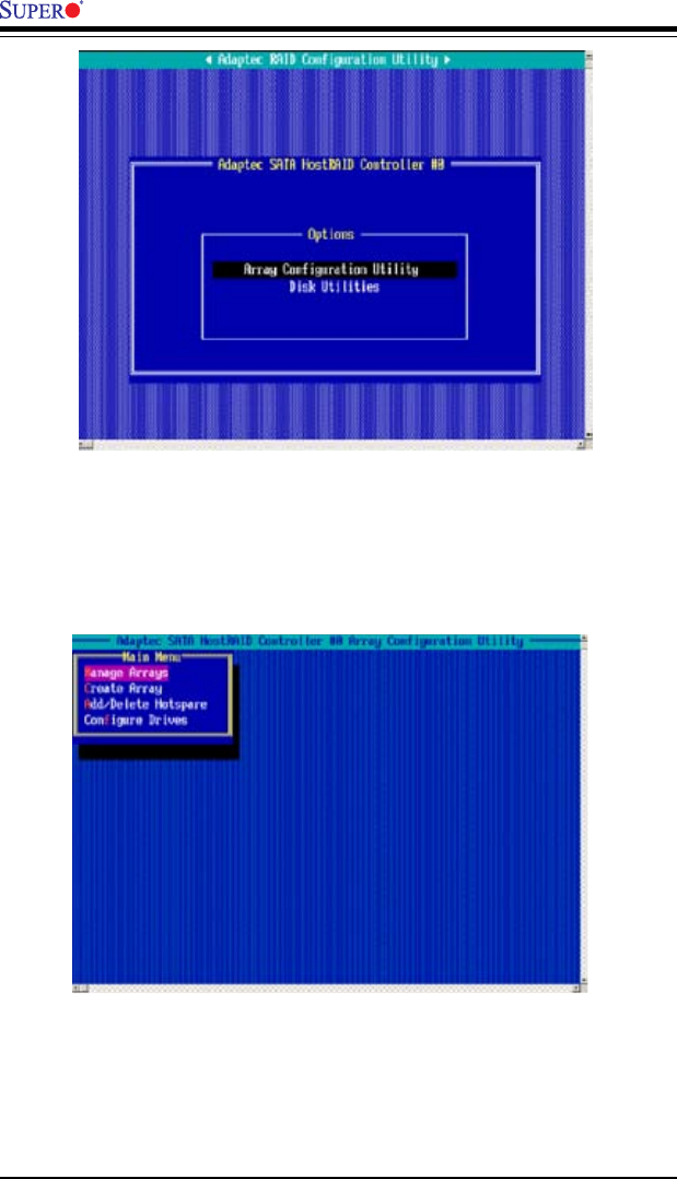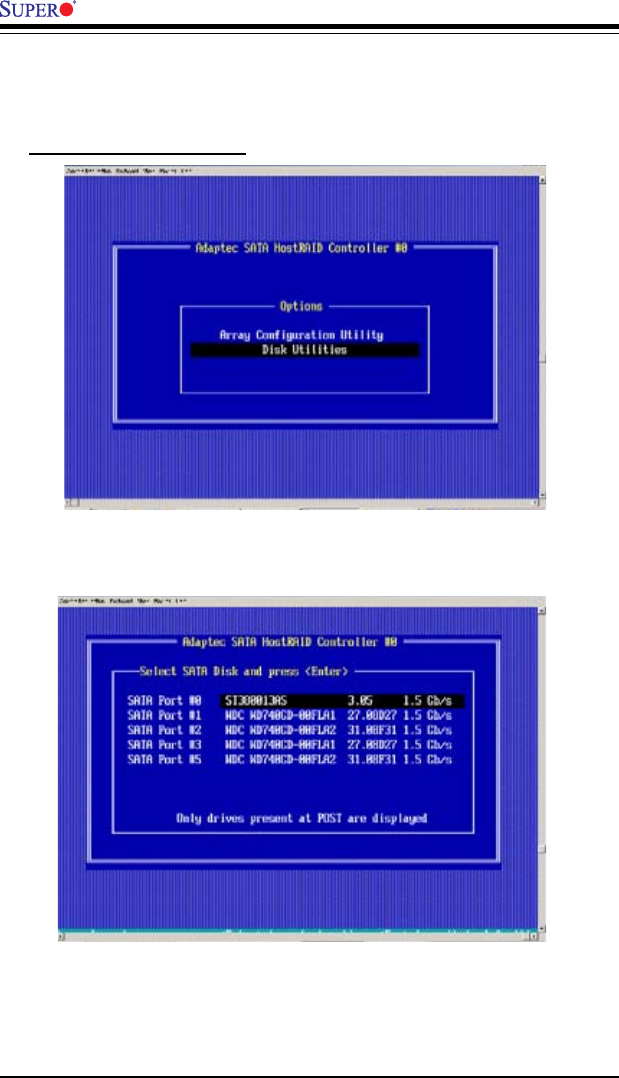 1. From the Adaptec RAID Conguration Utility Menu, select Disk Utilities (as