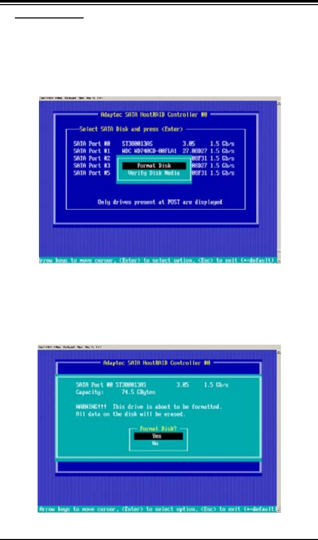 3. When the screen shown below displays, select Format Disk and press <Enter>.