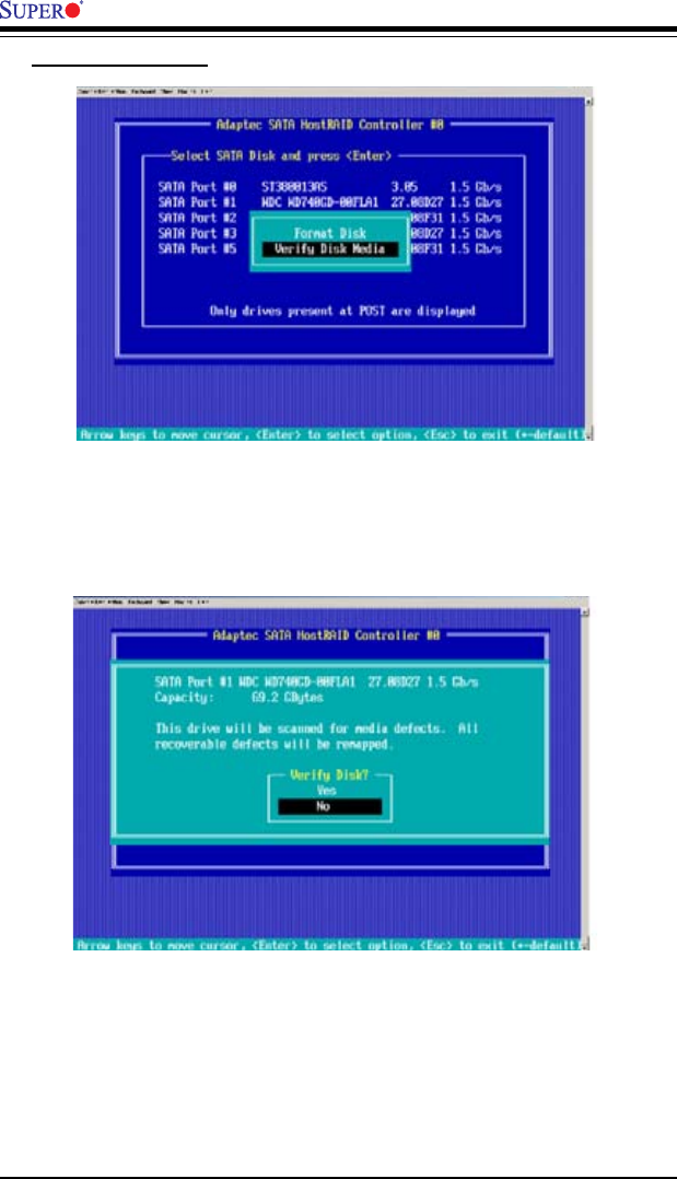 media defects. Select Yes and hit <Enter> to proceed with disk verifying; other-