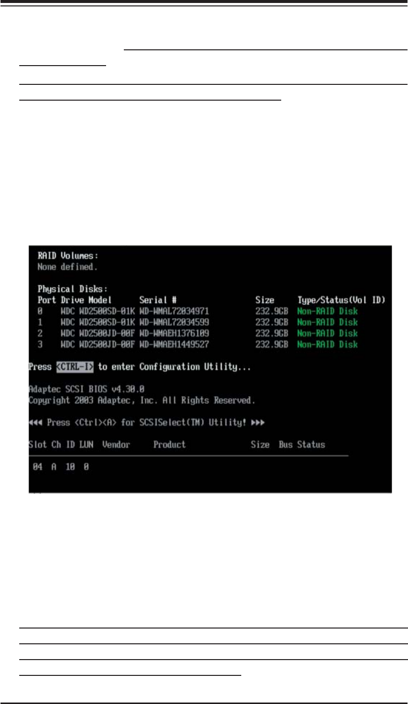 Note: If you wish to have SATA RAID functions on the server, you must fi rst set