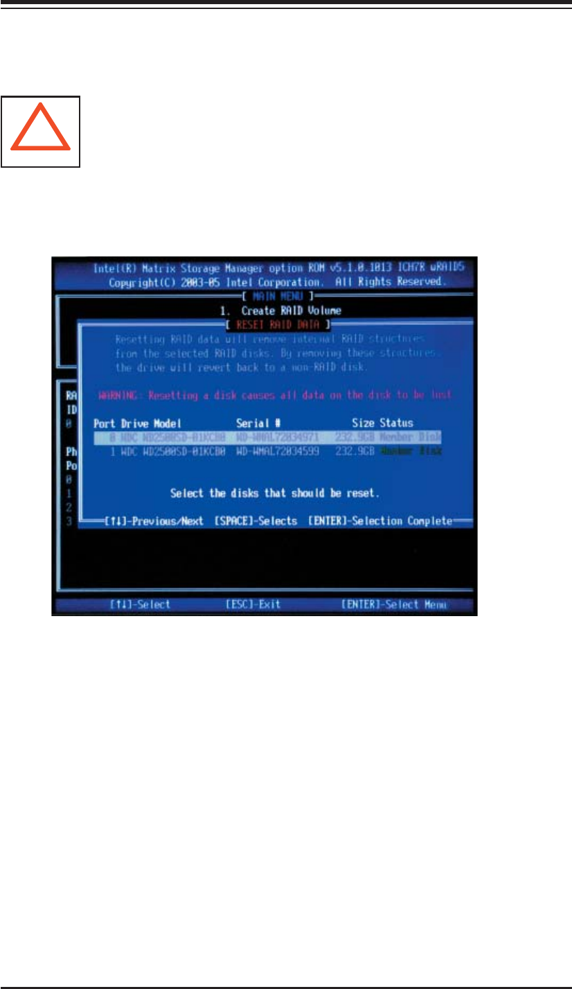 b. Use the <Up Arrow>, <Down Arrow> keys to highlight the RAID set drive to reset