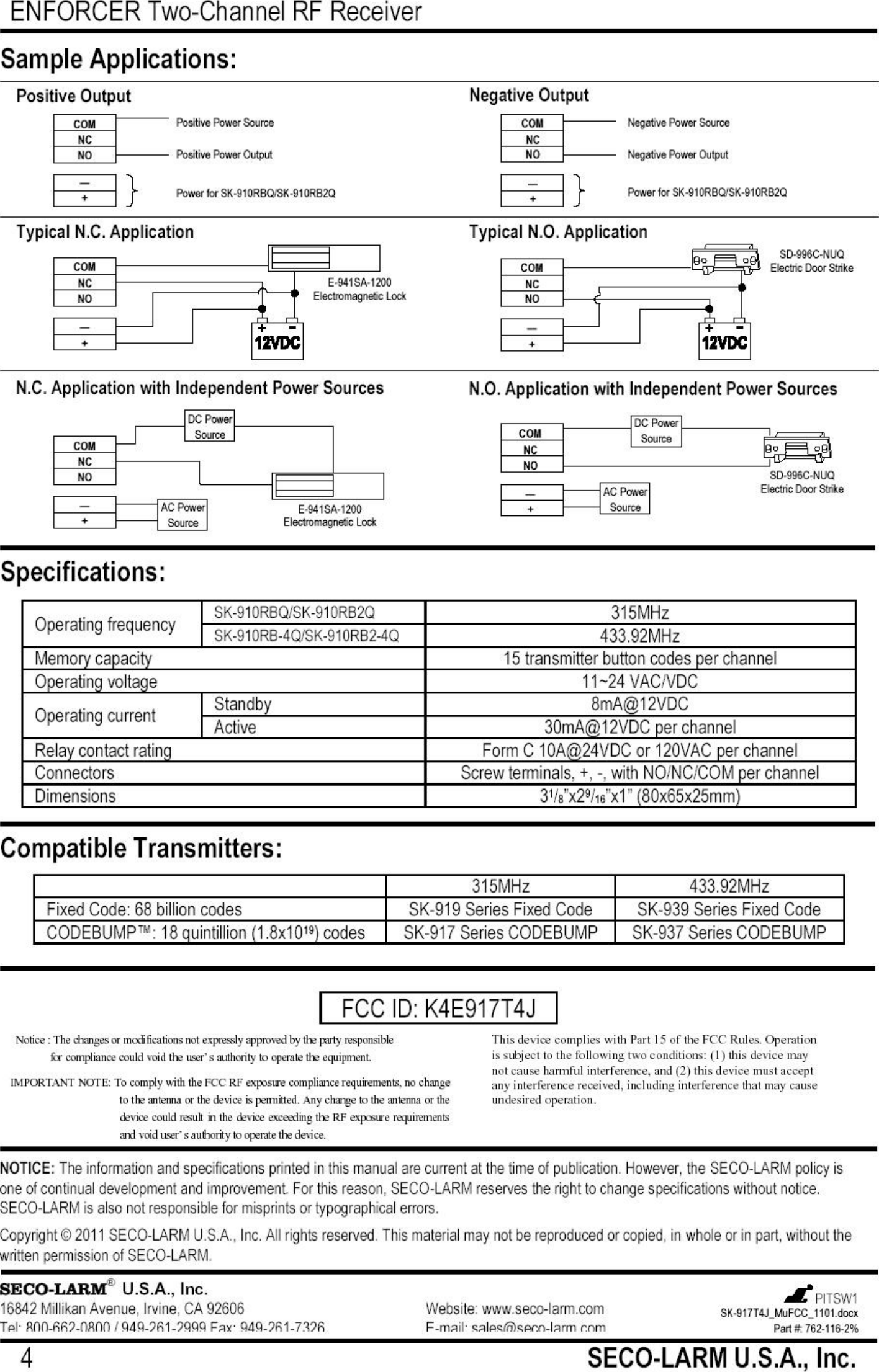 Superior Electronics 917T4J Remote Control Transmitter User Manual