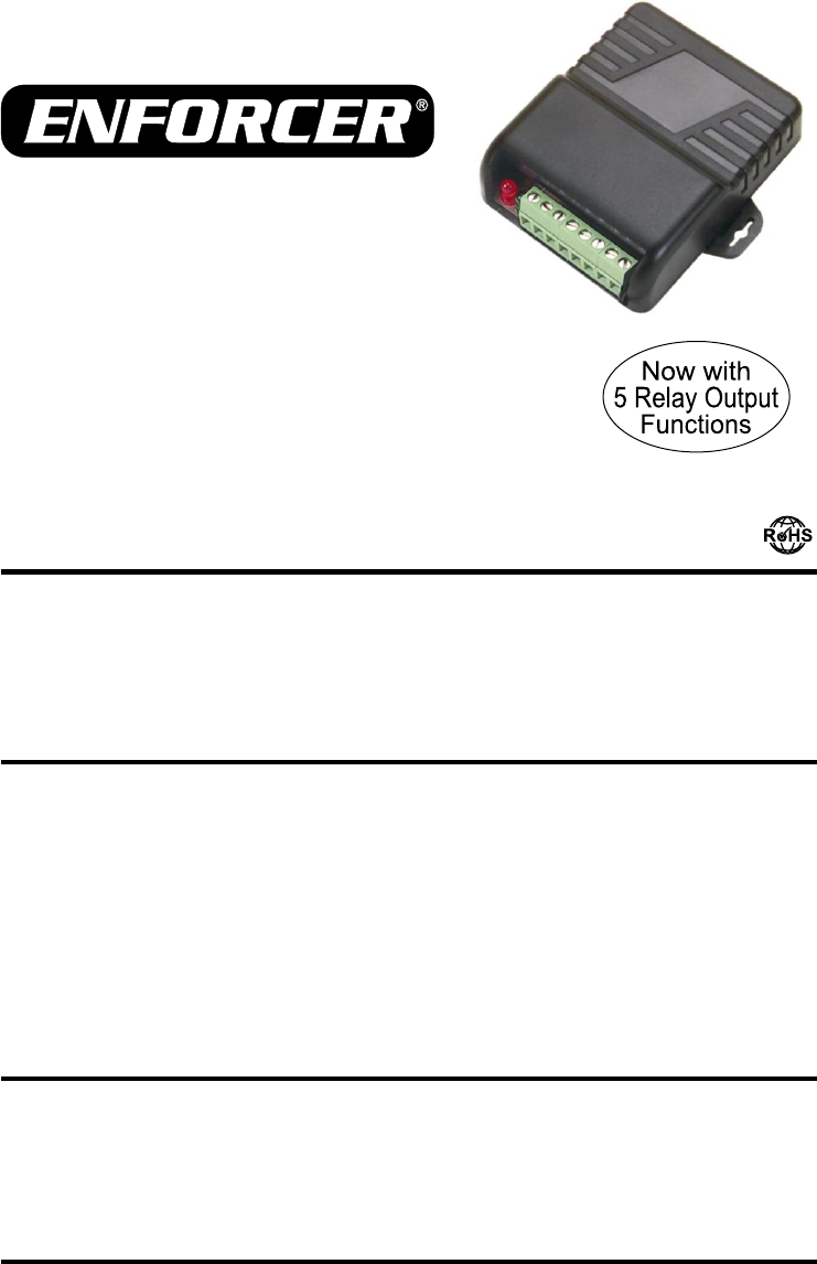 5. 1-Second Timed Output – When the transmitter button is pressed, the relay will turn ON for 1 second.