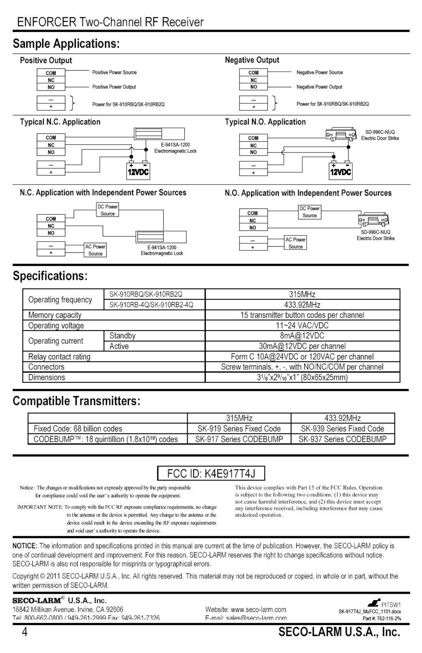 Superior Electronics 917T4J Remote Control Transmitter User Manual