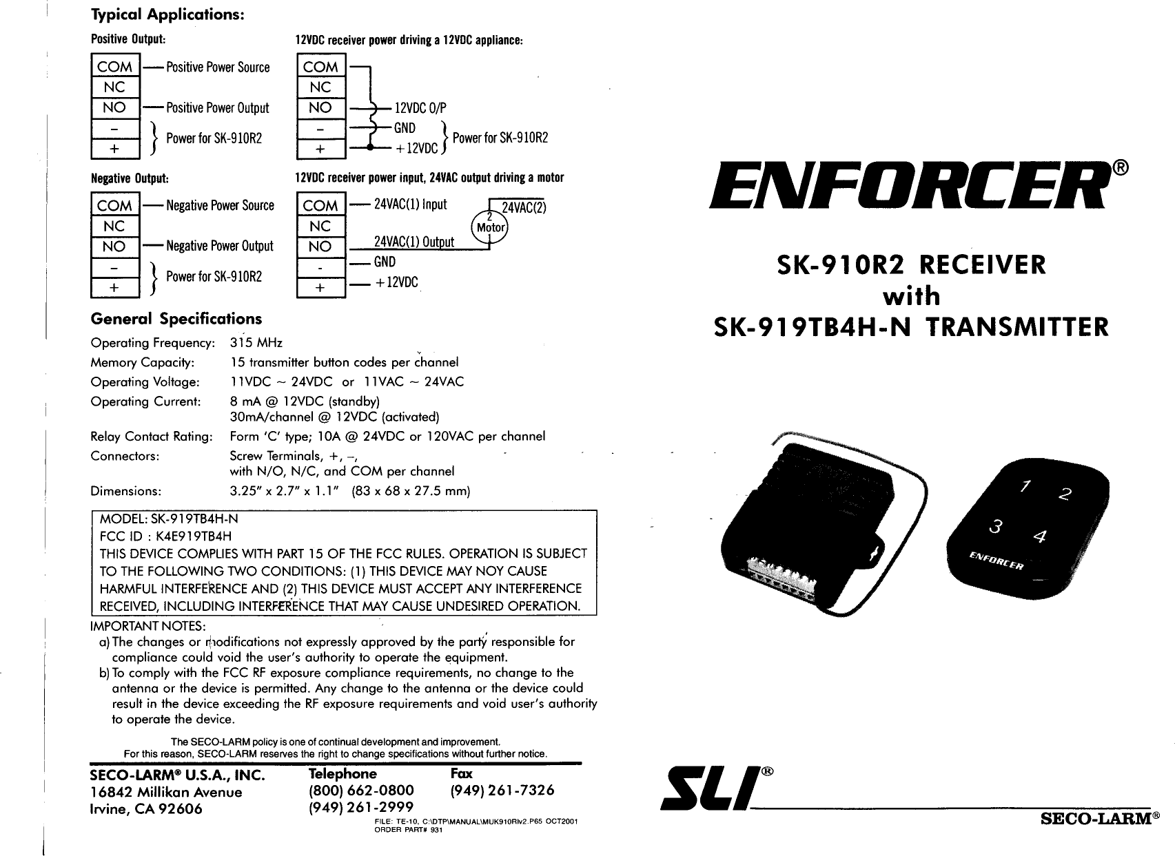 Superior Electronics 919TB4H Hand Held Transmitter User Manual
