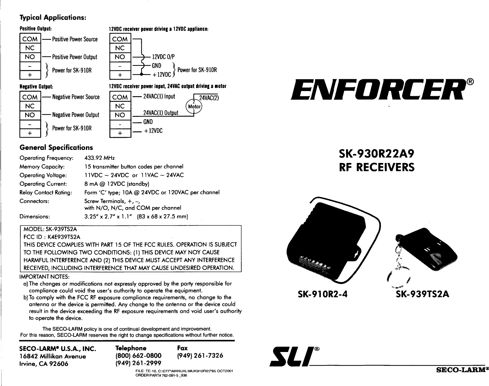 Superior Electronics 939TS2A Hand Held Transmitter User Manual