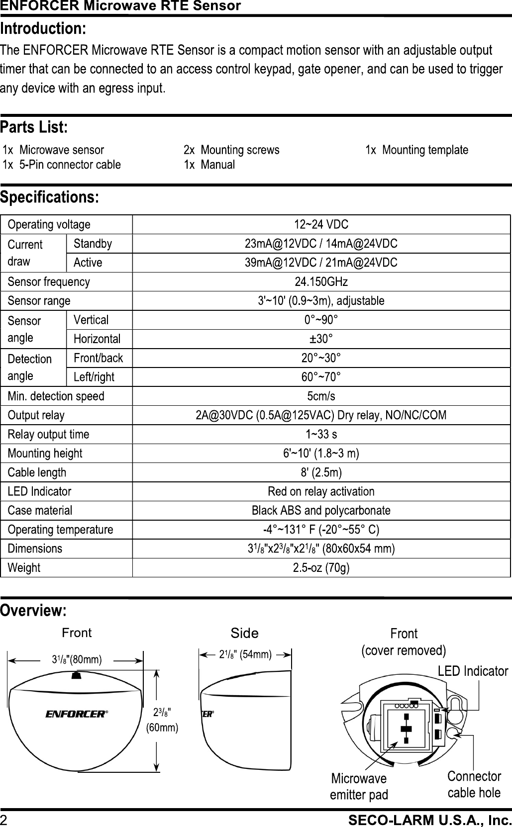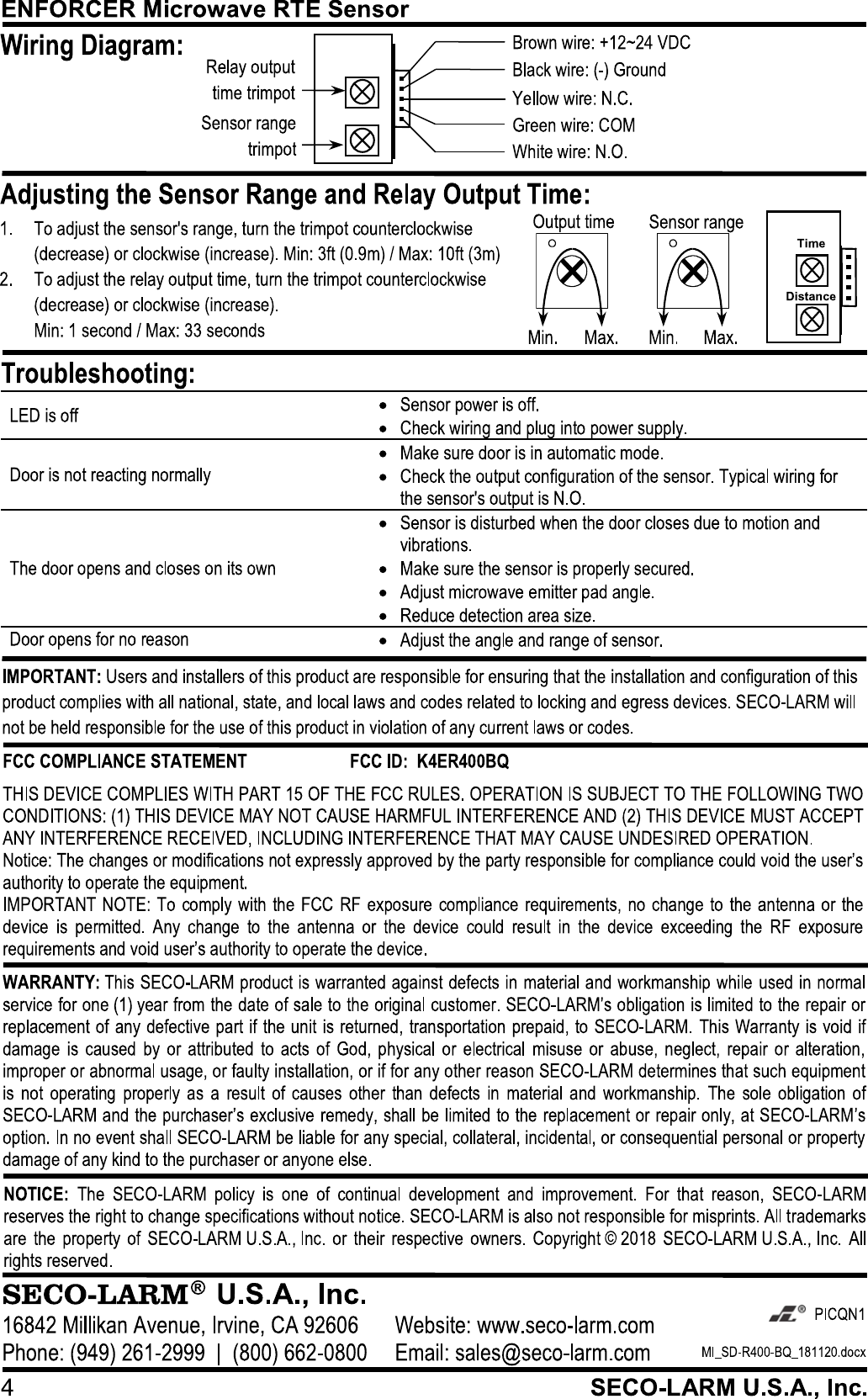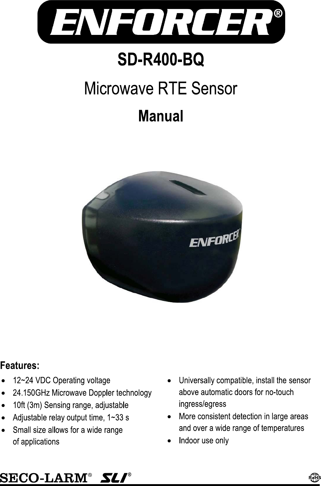 Superior Electronics R400BQ Microwave RTE Sensor User Manual