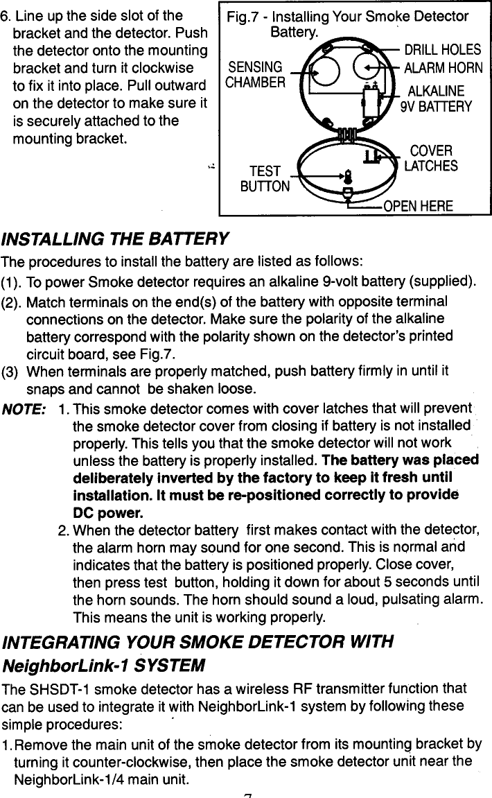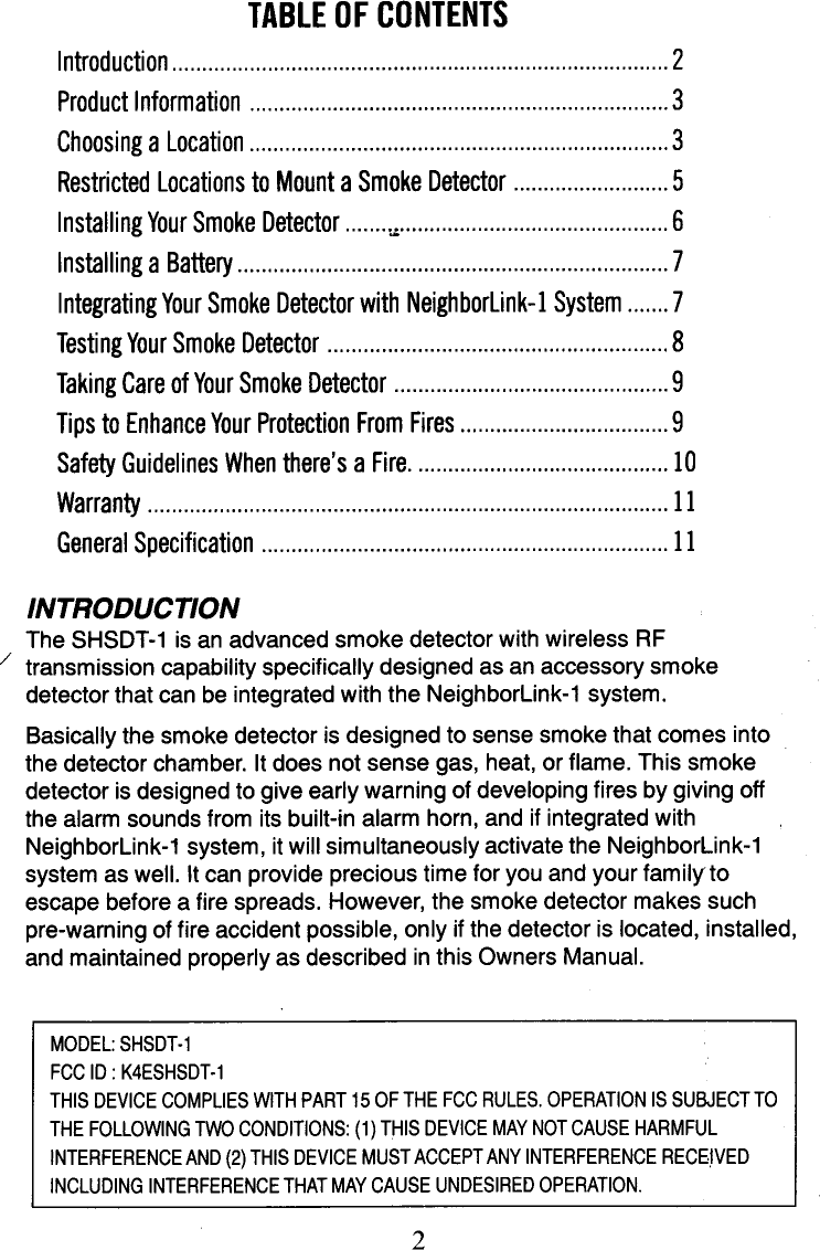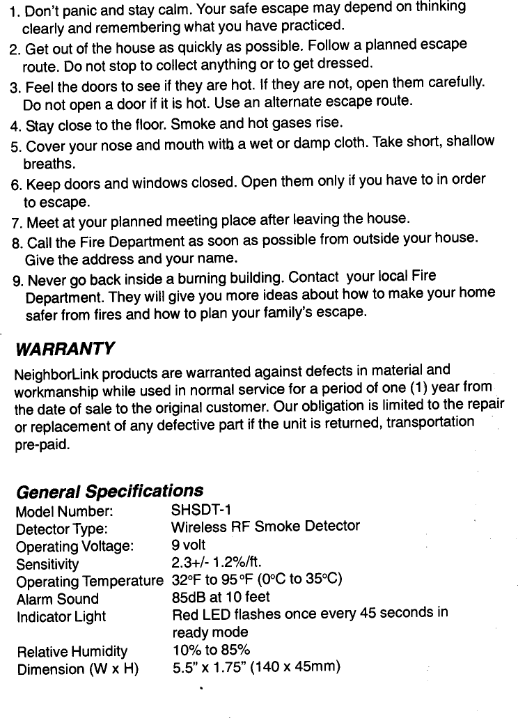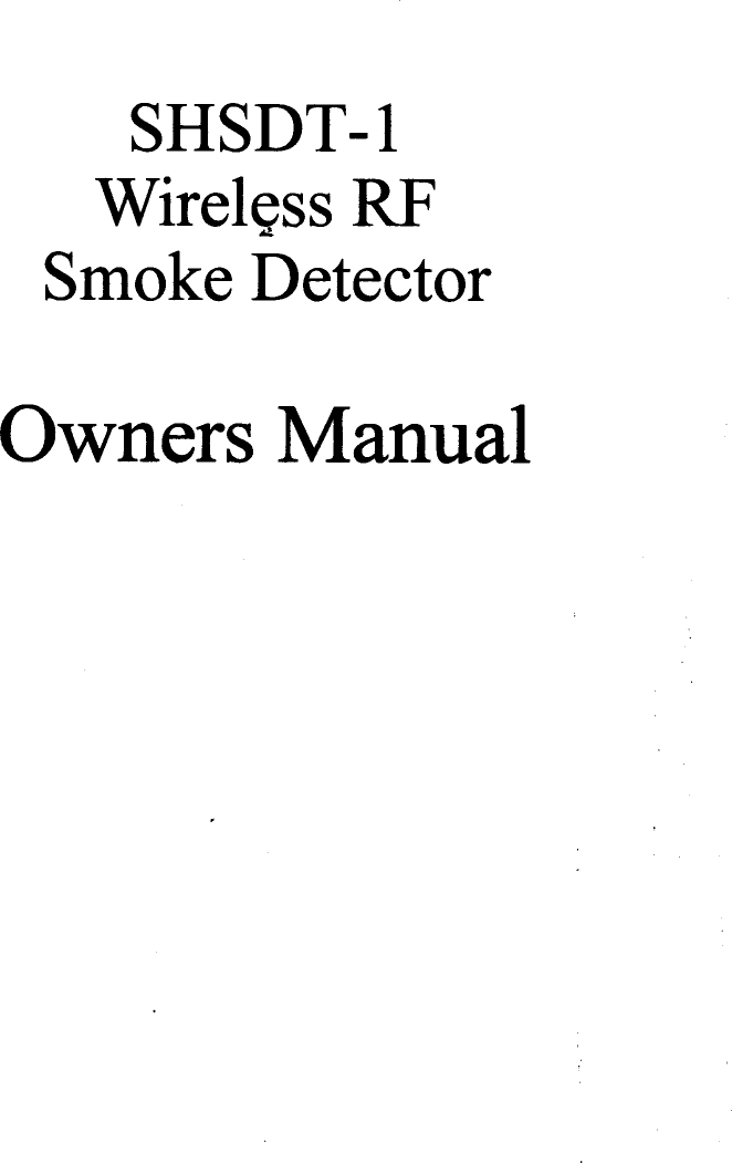 Superior Electronics SHSDT-1 Wireless RF Smoke Detector User Manual