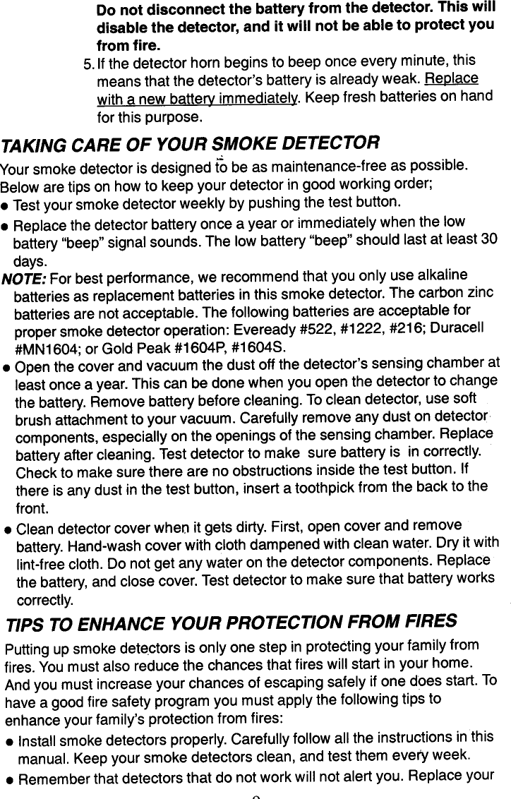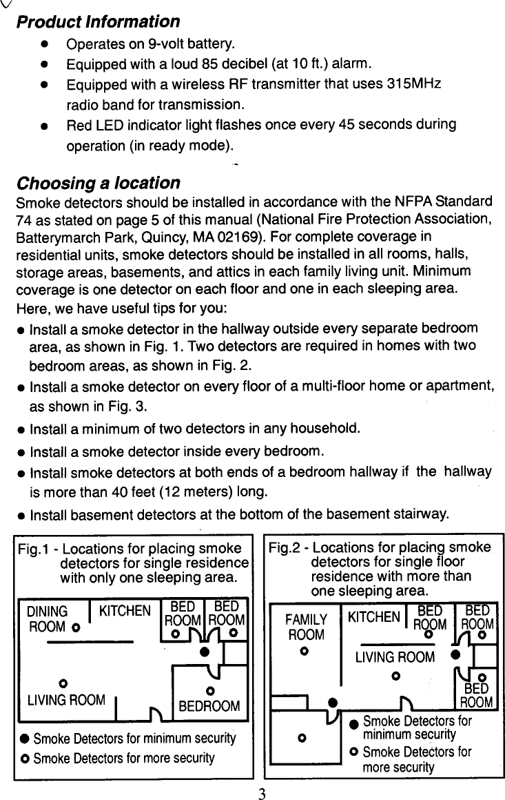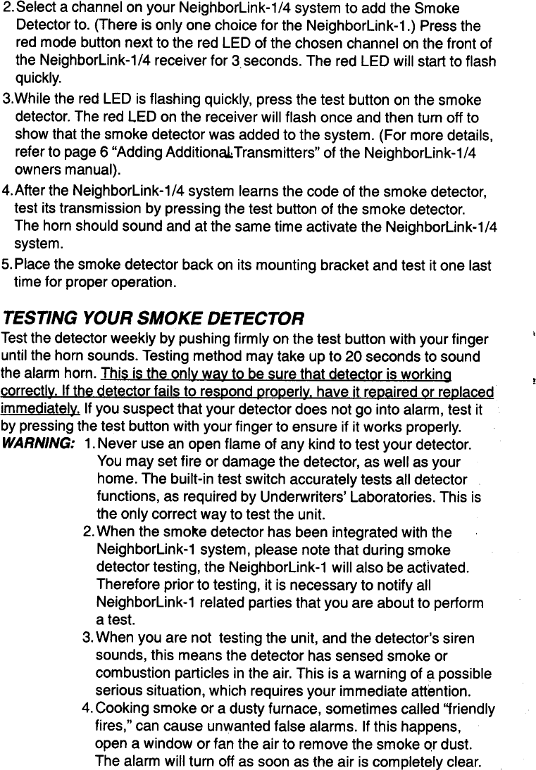Superior Electronics Corporation Wireless RF Smoke Detector Users Manual