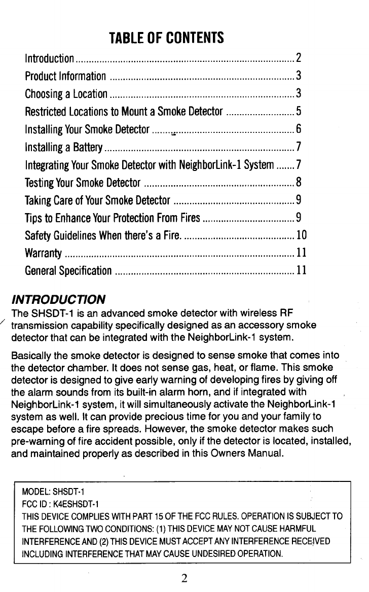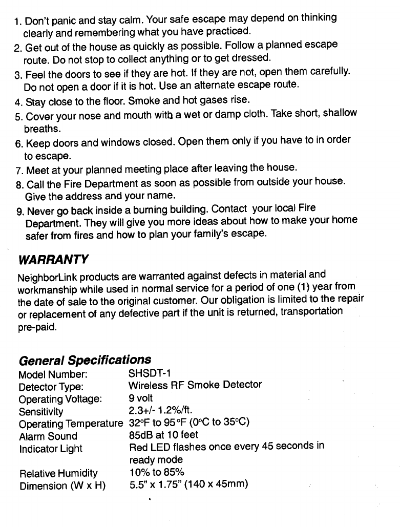 Superior Electronics SHSDT-1 Wireless RF Smoke Detector User Manual