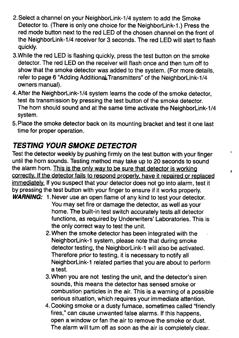 Superior Electronics Corporation Wireless RF Smoke Detector Users Manual