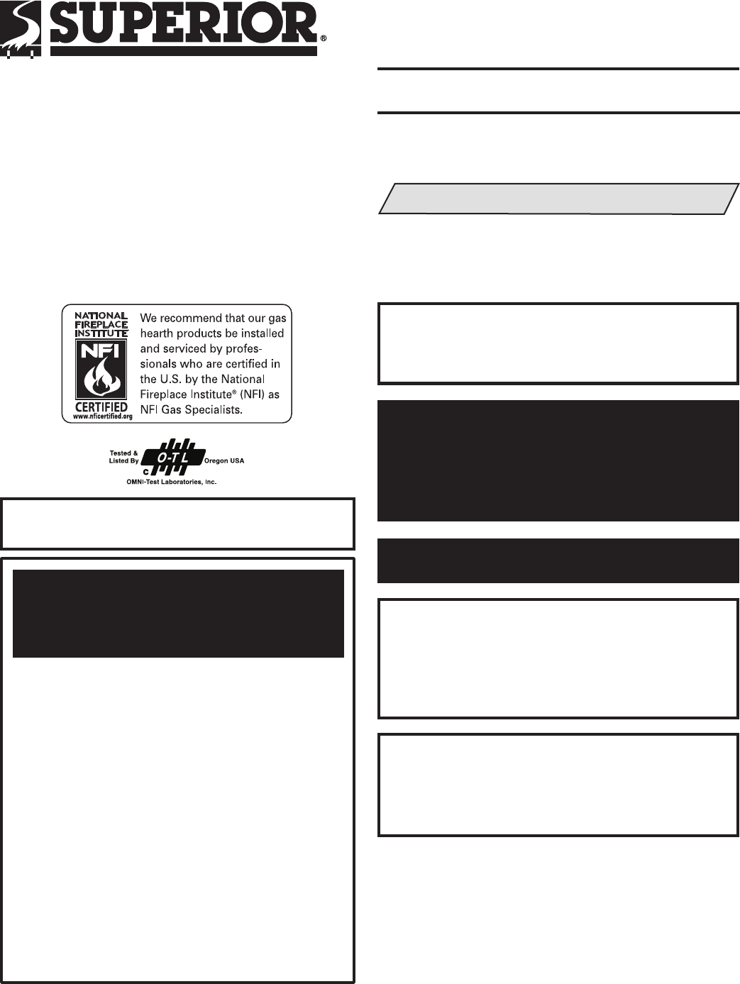 Consult your local distributor for fireplace code information.