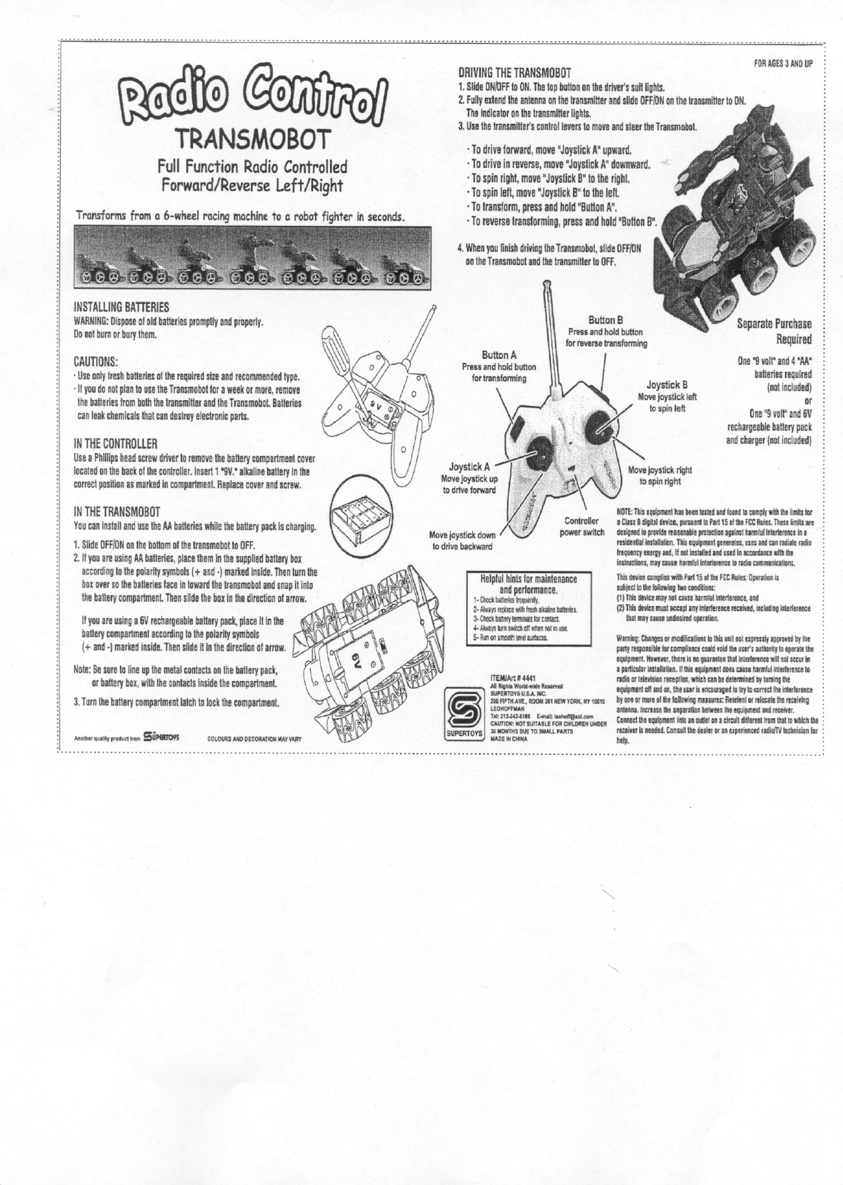 Supertoys Co 4441-RC01-TX Remote Control Transmobot User Manual