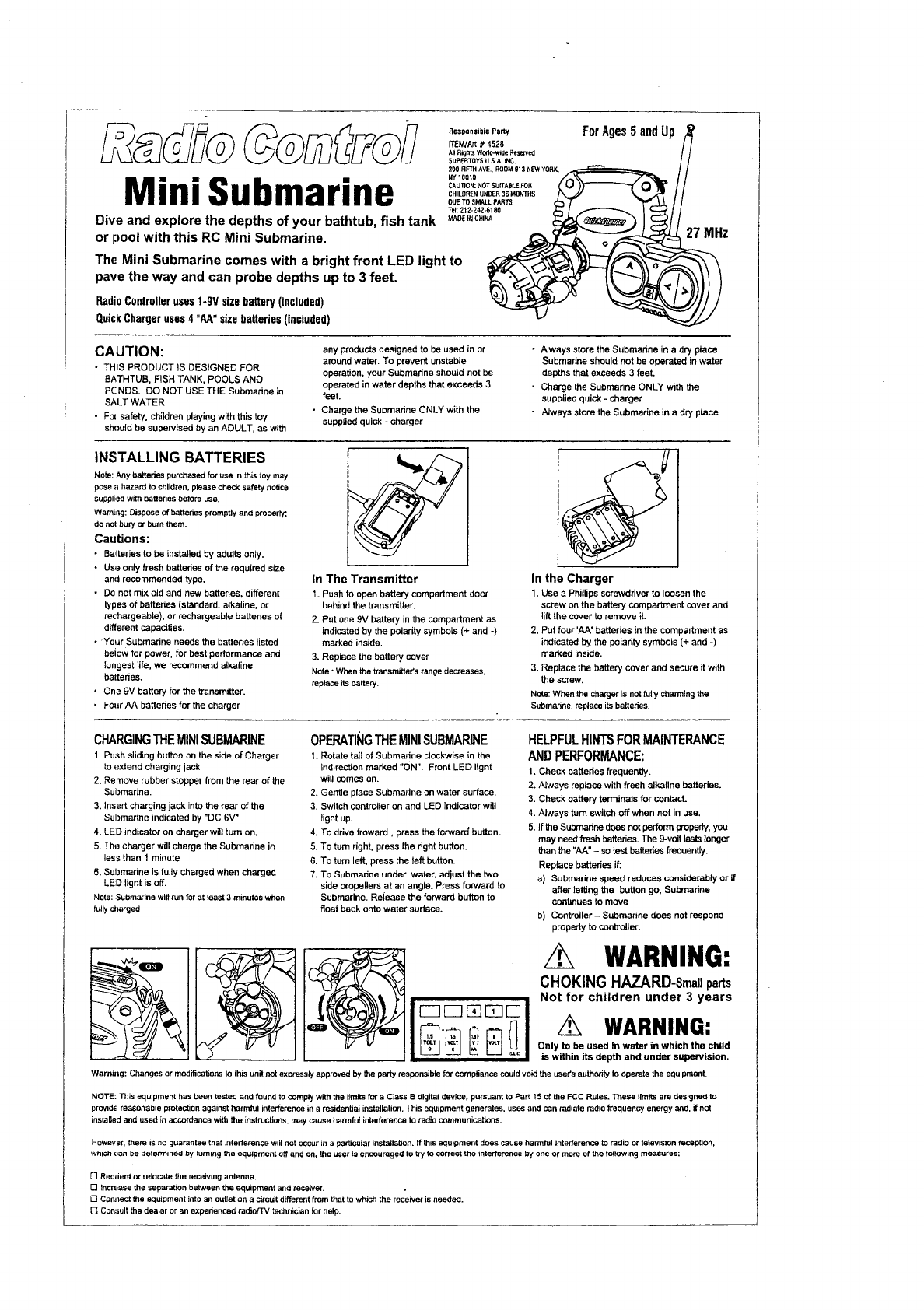 Supertoys Co 4528-RC01 RC Submarine User Manual