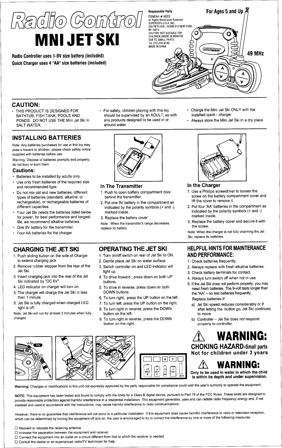 Supertoys Co 6020-RC01-RX RC Boat User Manual