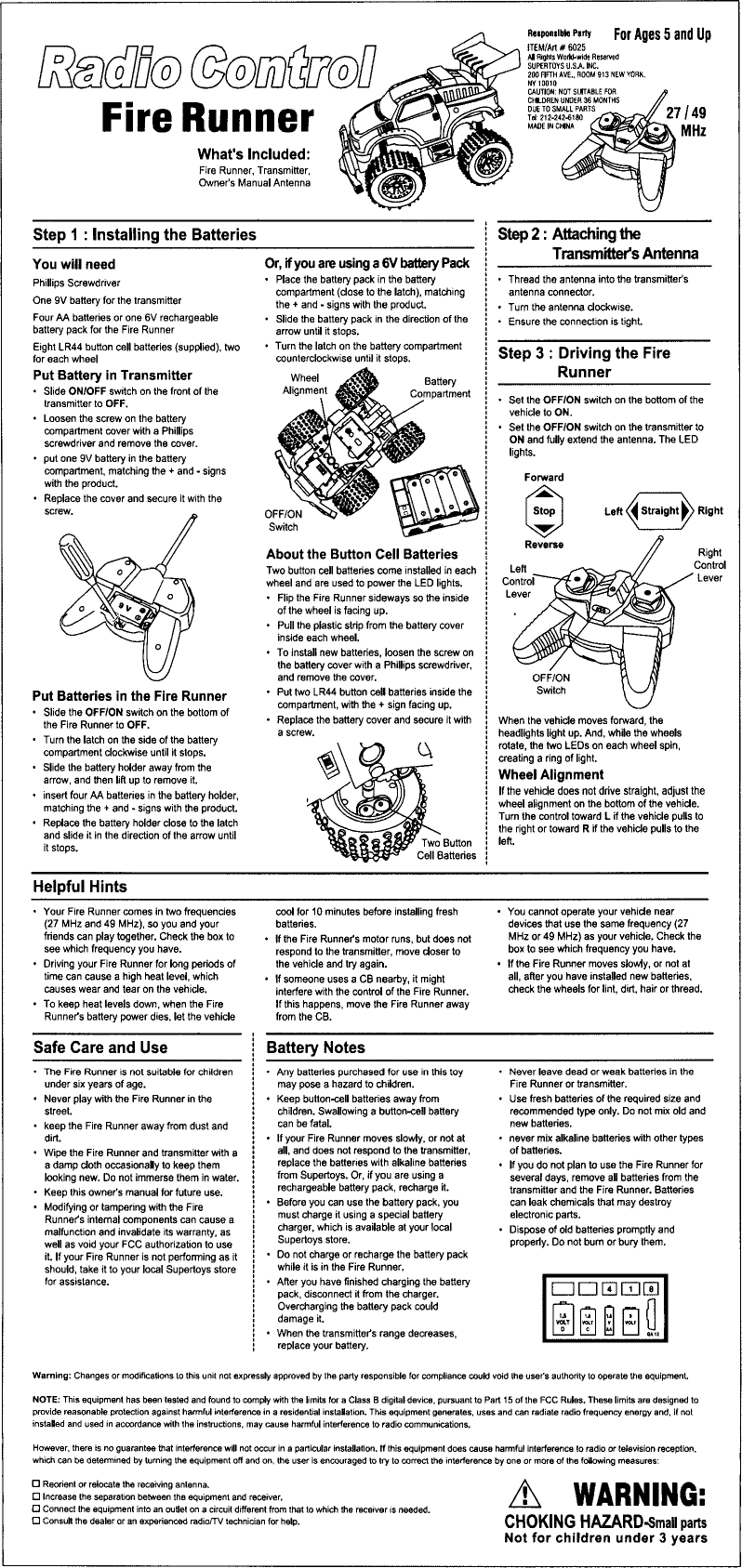 Supertoys Co 6025-RC01-RX RC C ar User Manual