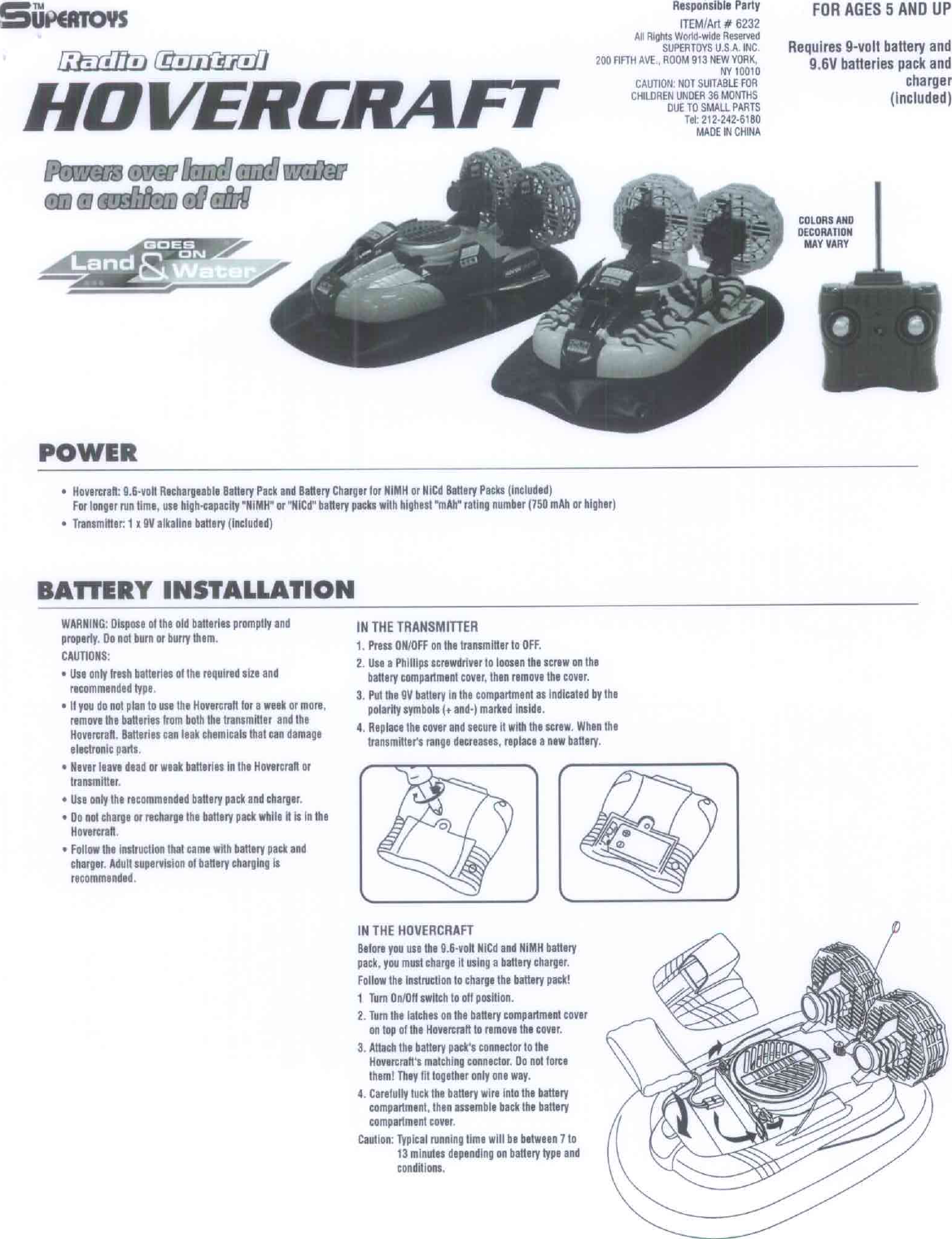 Supertoys Co 6232RC01TX RC Toy User Manual
