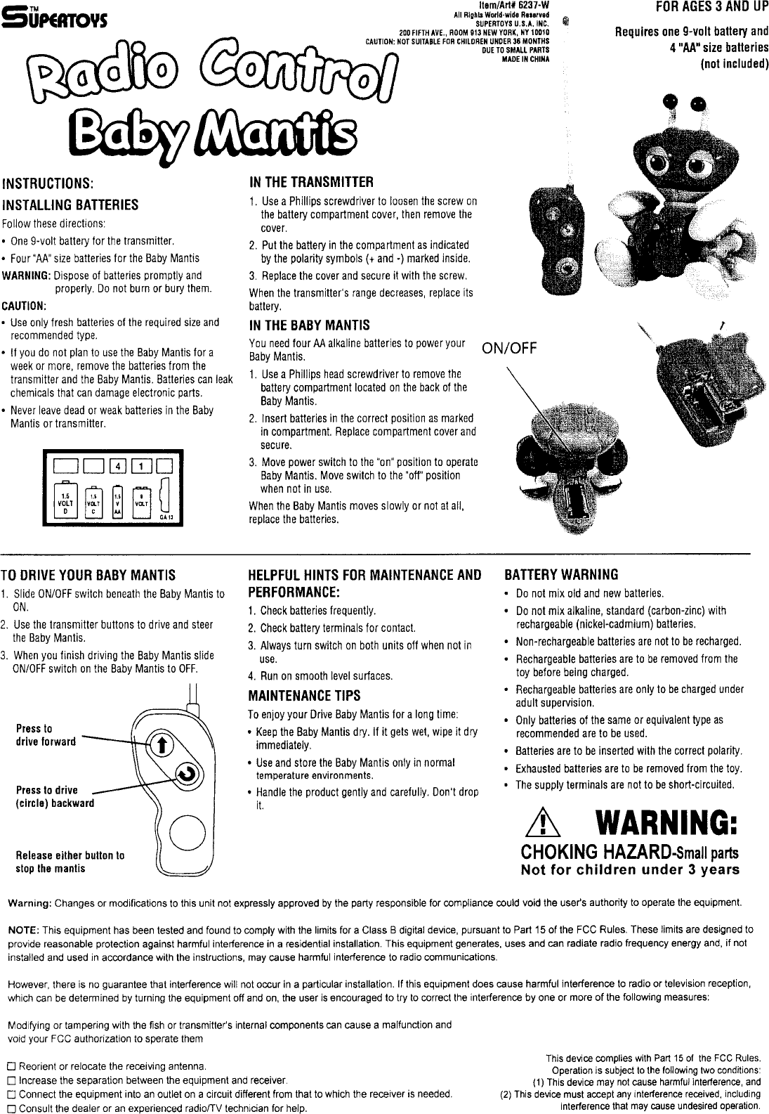 Supertoys Co 6237RC01TX RC Toy User Manual