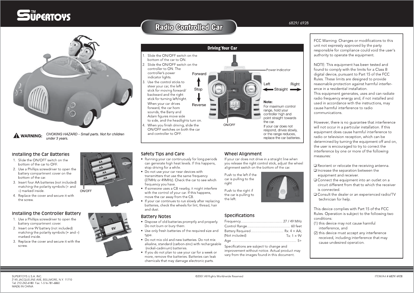 Supertoys Co 6829-RC01 RC Car User Manual 4404 IS 49MHz 0204