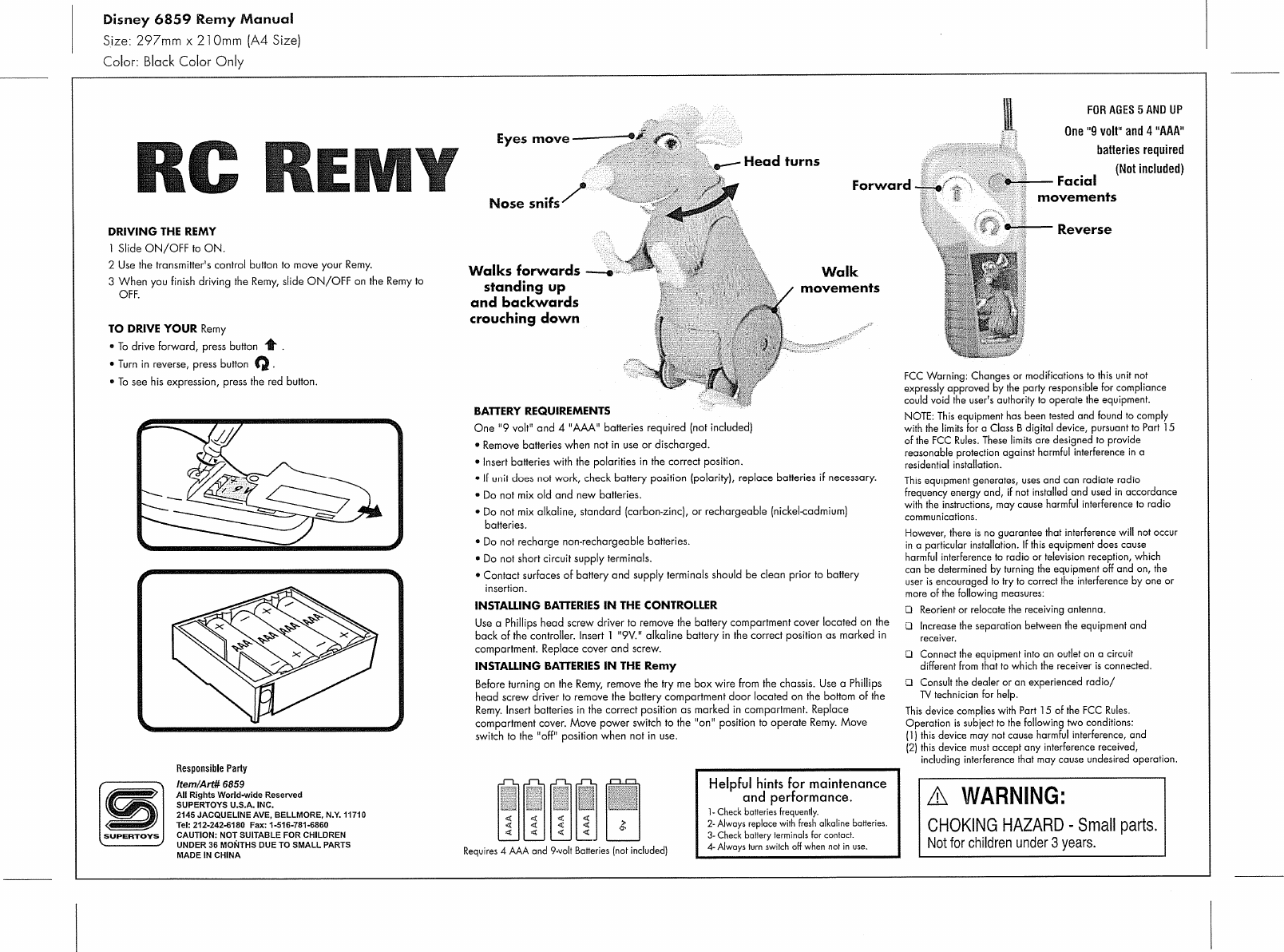 Supertoys Co 6859-RC01 RC Toy User Manual
