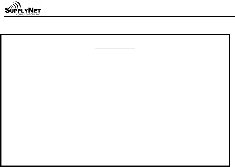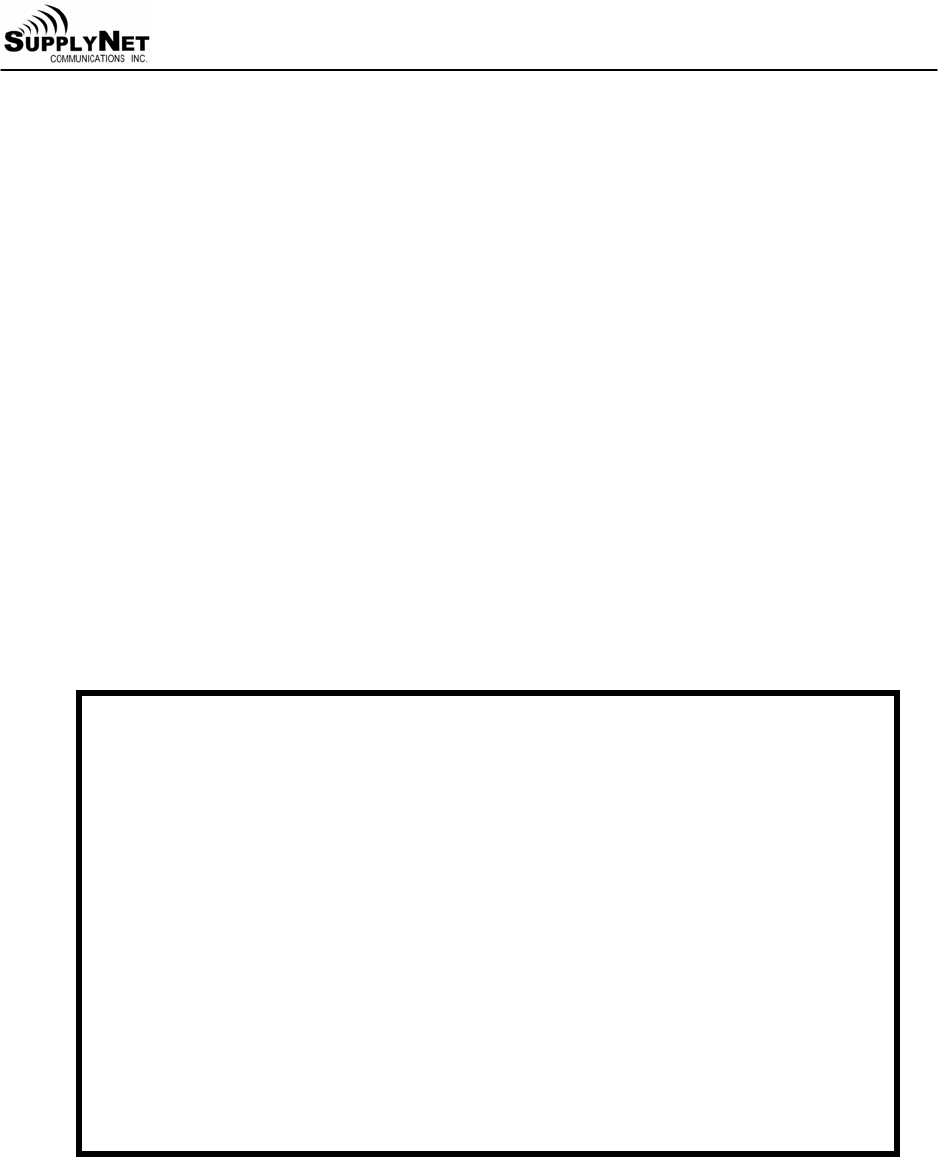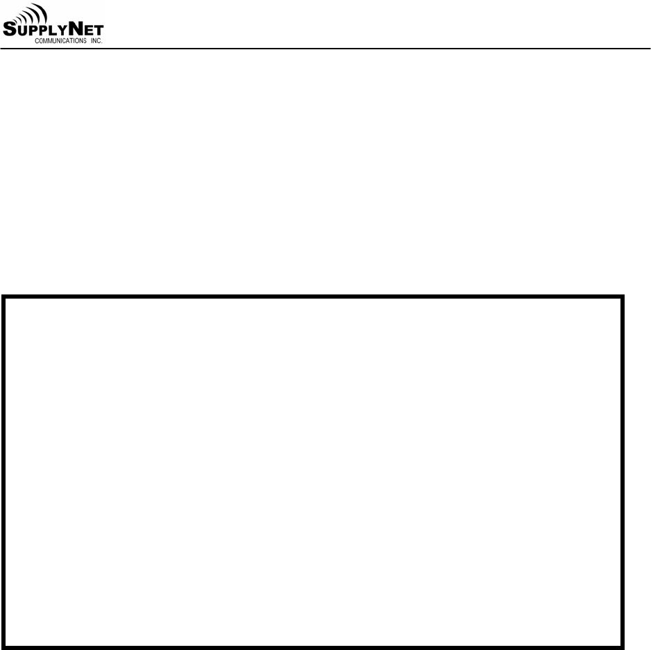 SupplyNet Communications. No part of this document may be stored or transmitted in any electronic form