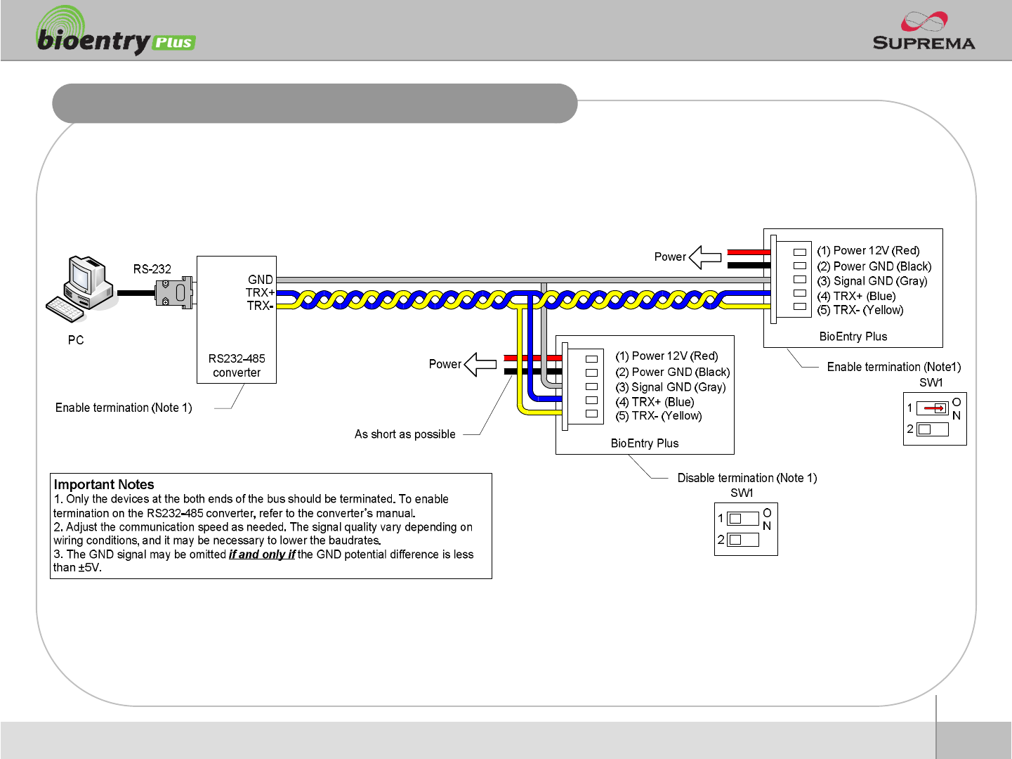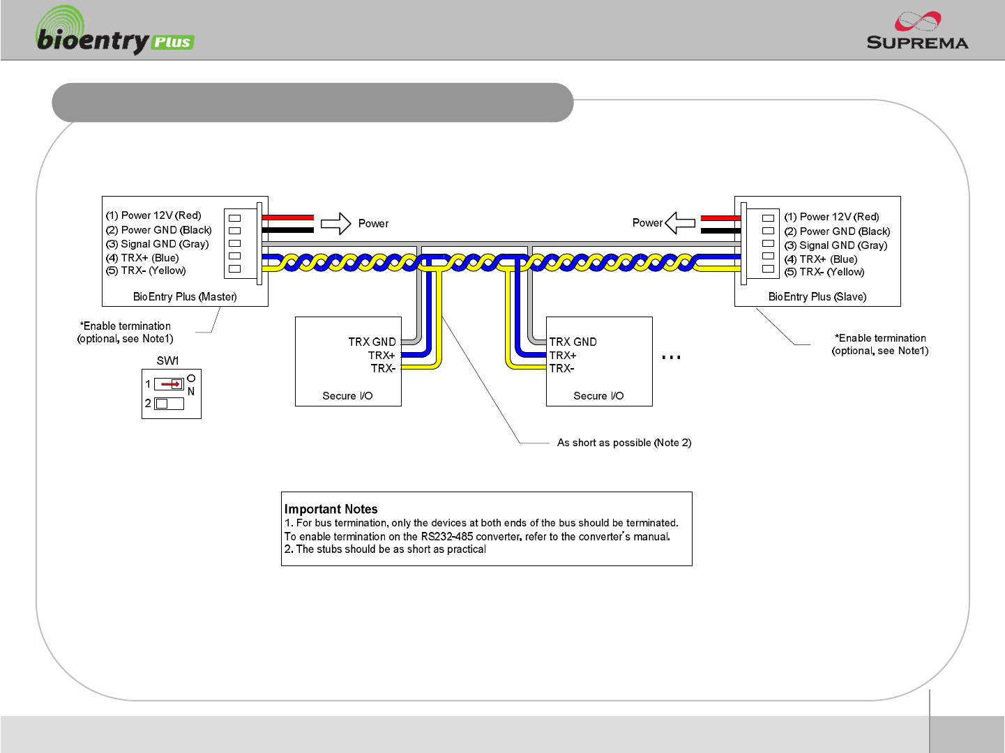 lMaximum numbers of devices in an RS485 loop are two(2) devices (BioStation or BioEntry