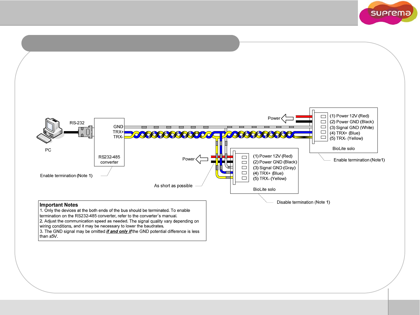 To enable termination on the RS232-485 converter, refer to the converter’s manual.