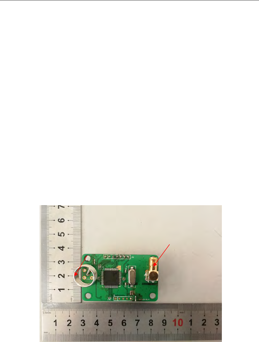The TX antenna uses a helical antenna and is fixed on the PCB for