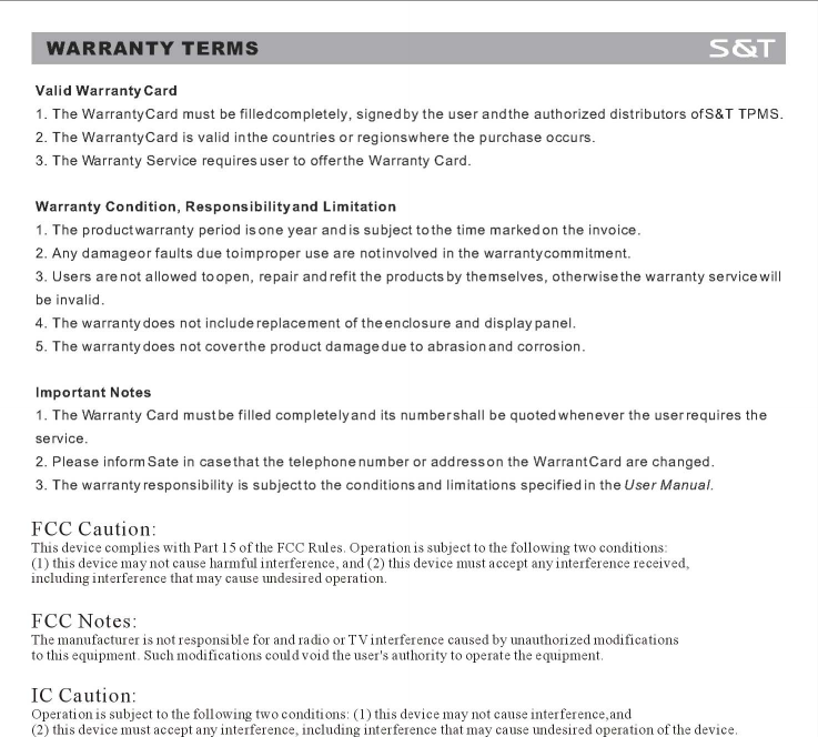 Suzhou Sate Auto Electronic Co., Ltd Tire Pressure Monitoring System Users Manual