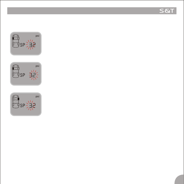 5.Once the Master starts to work, the screen starts to display the pressure of the four tires in turn. Before