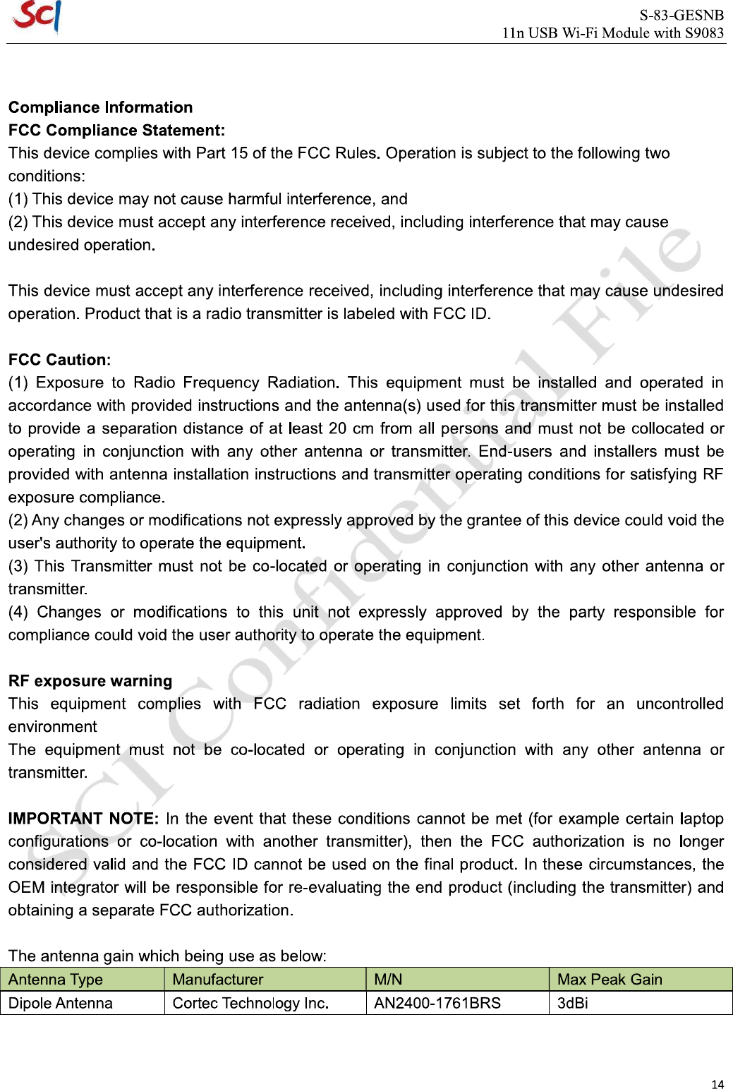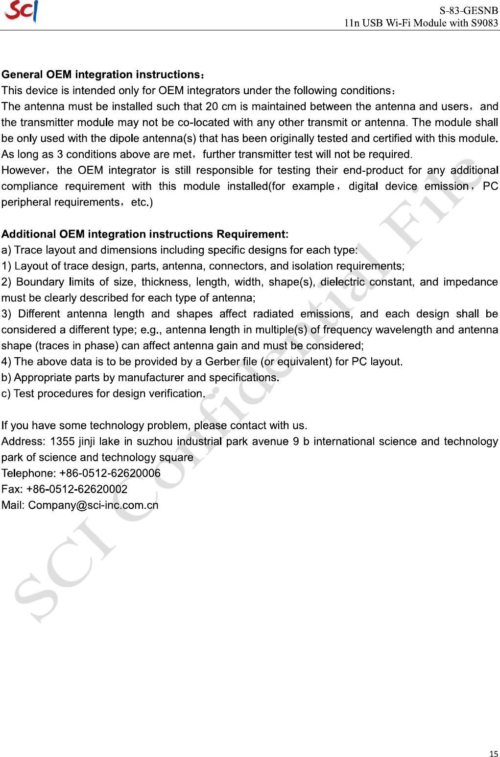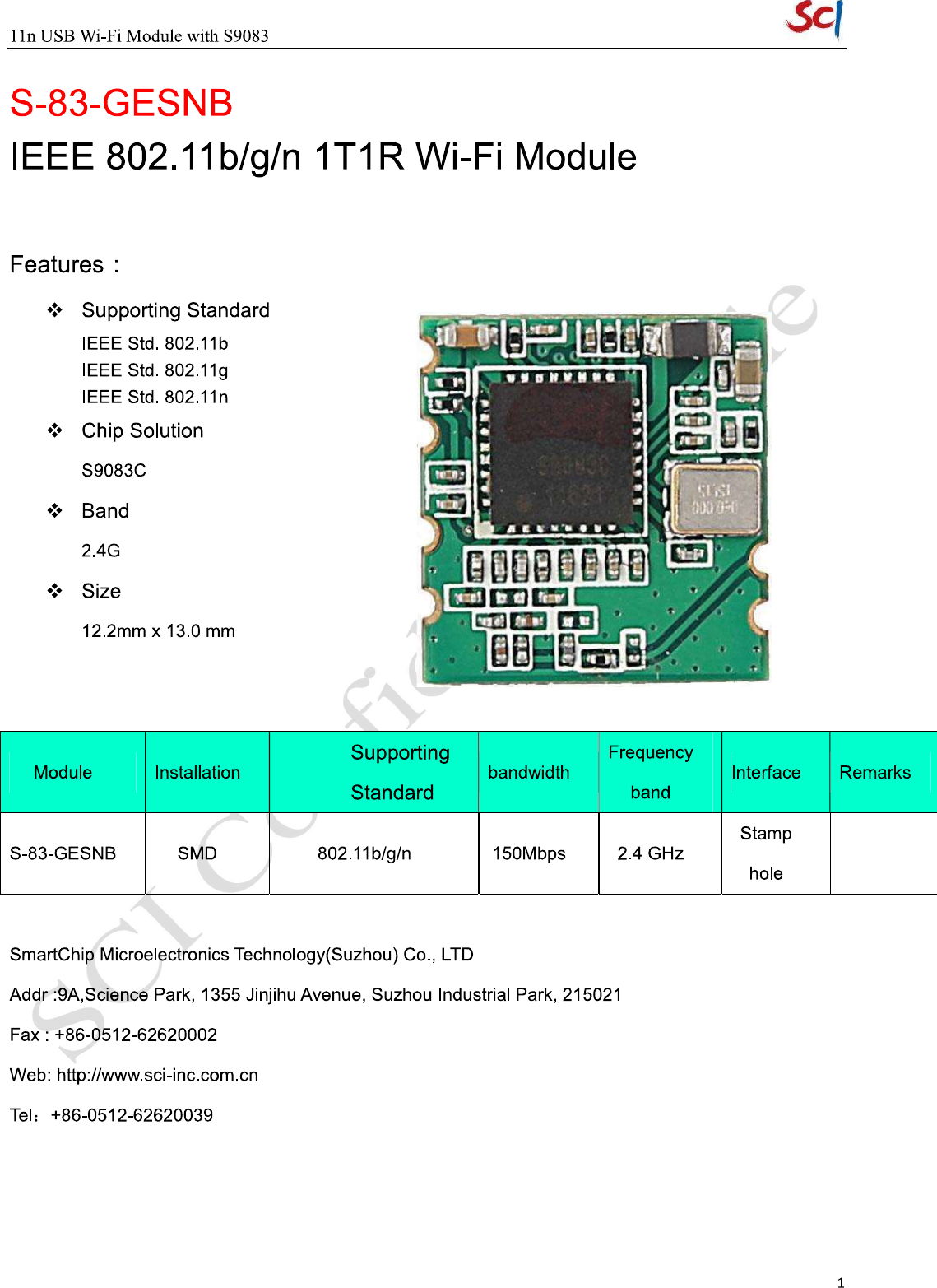 Suzhou SmartChip Semiconductor S83GESNB WLAN Module User Manual