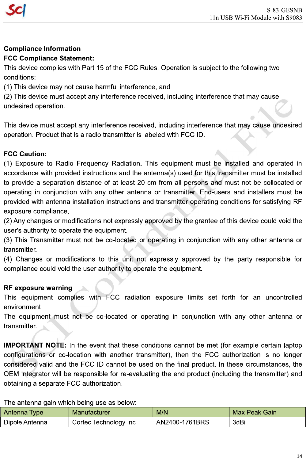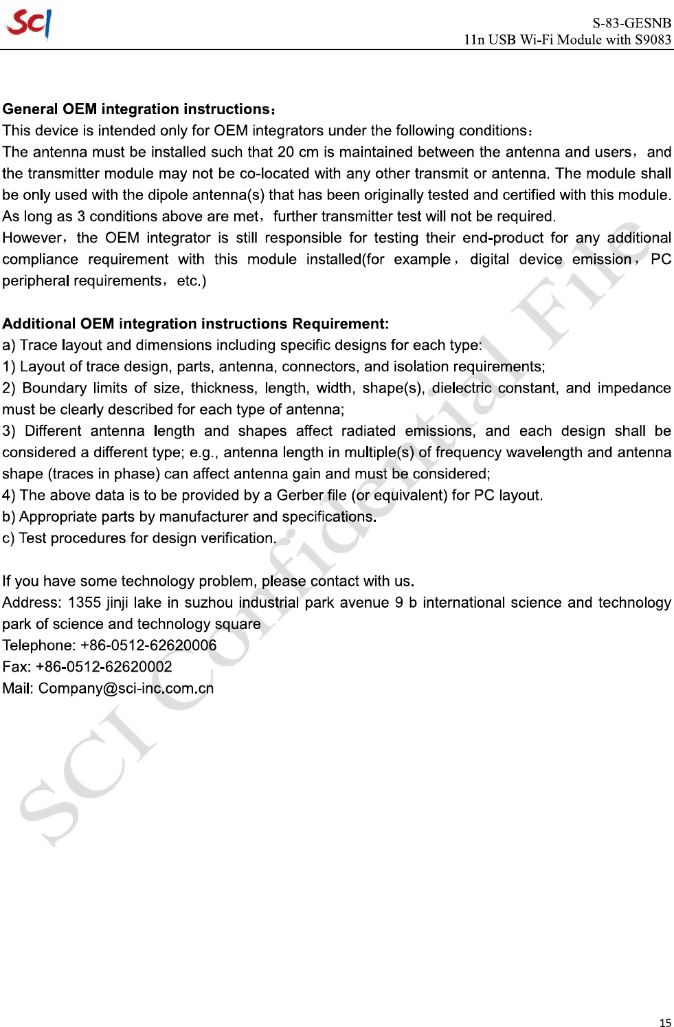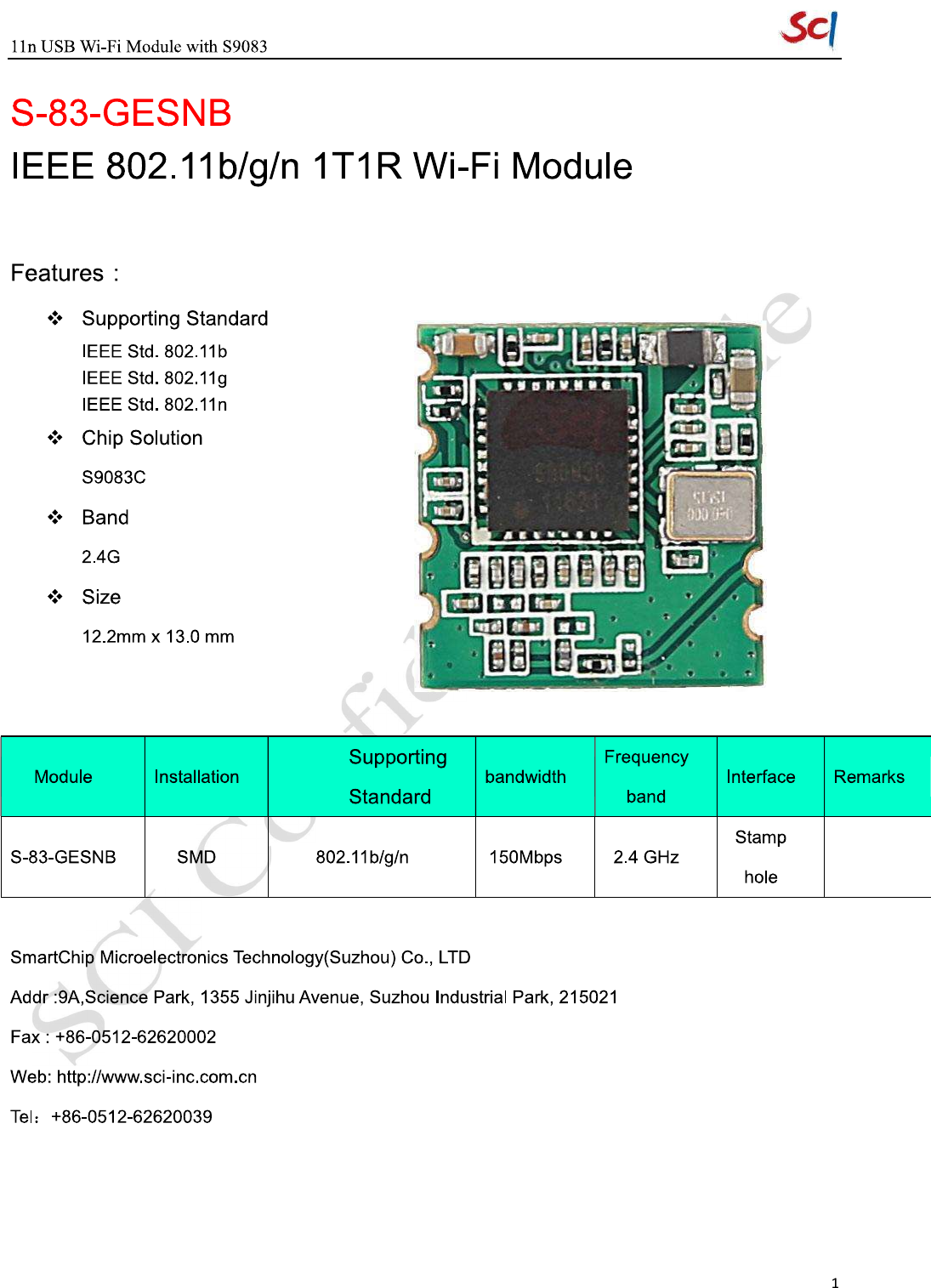 Suzhou SmartChip Semiconductor S83GESNB WLAN Module User Manual
