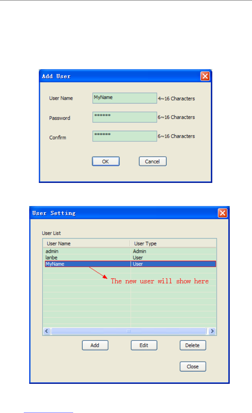 Pls click"Add" buttom to add one new user and will popup below interfac.pls pay attention to
