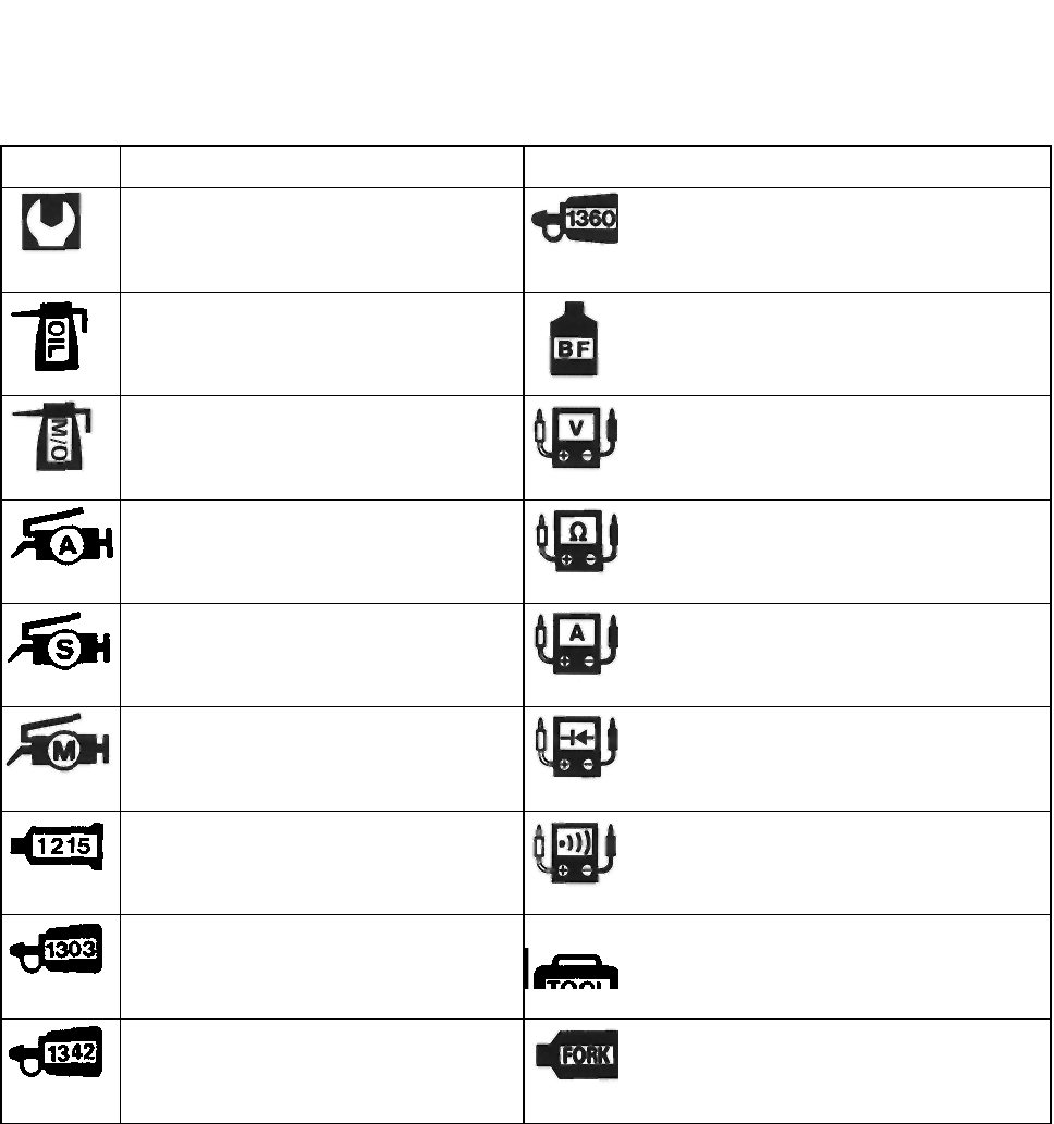 Listed in the table below are the symbols indicating instructions and other information necessary for