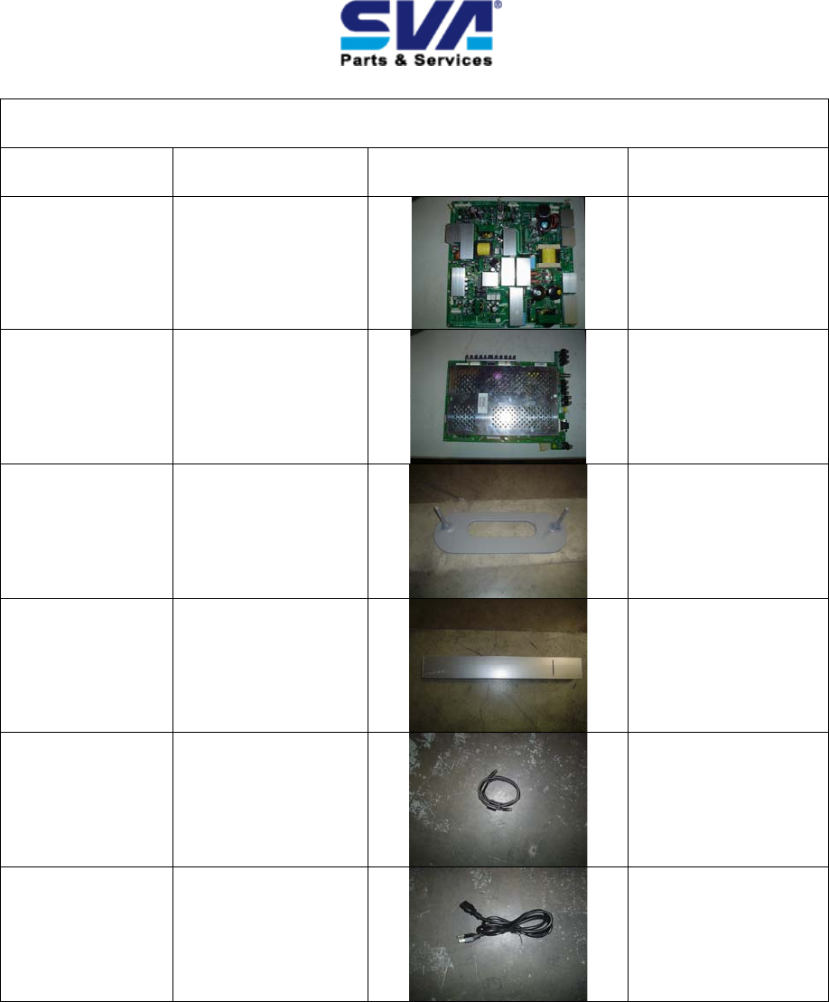 SVA Model # Part Name Image Part #s
