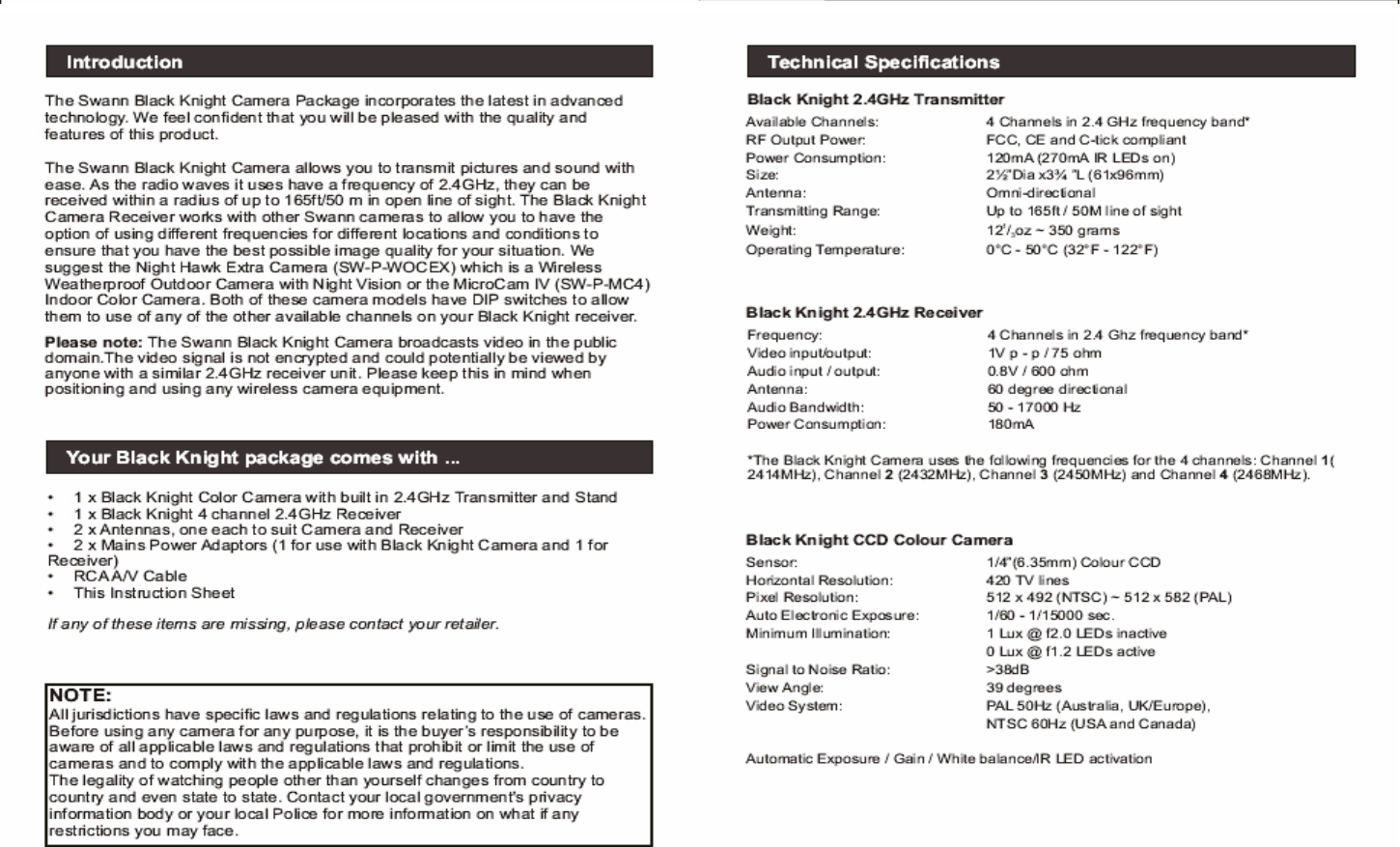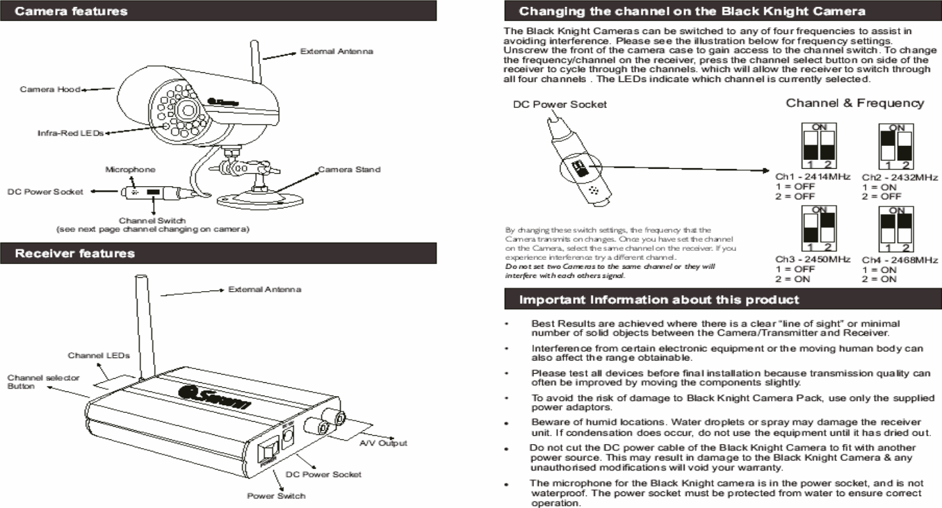 Swann Communications BKY001 Black Knight Wireless Color Camera User Manual s