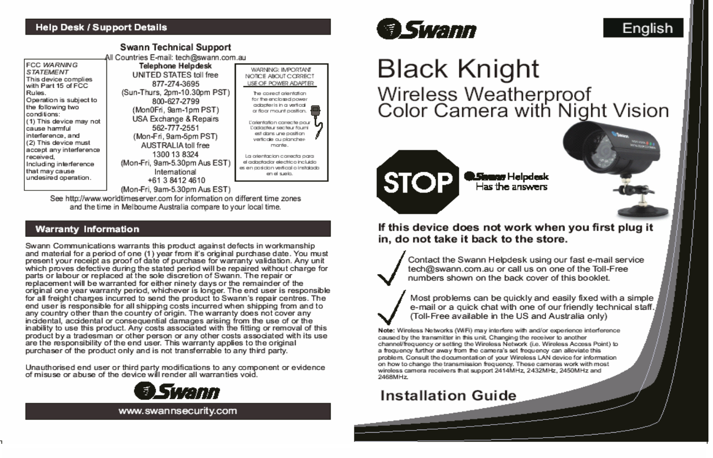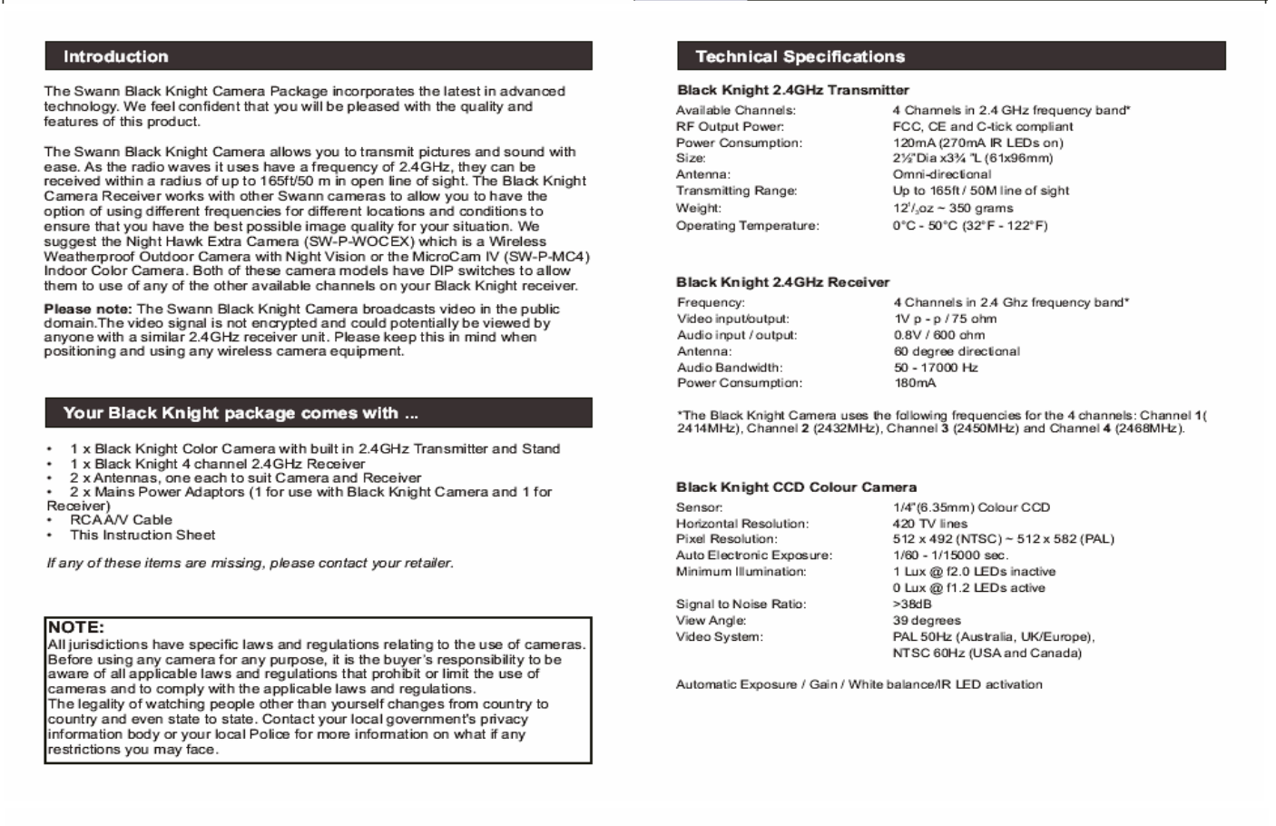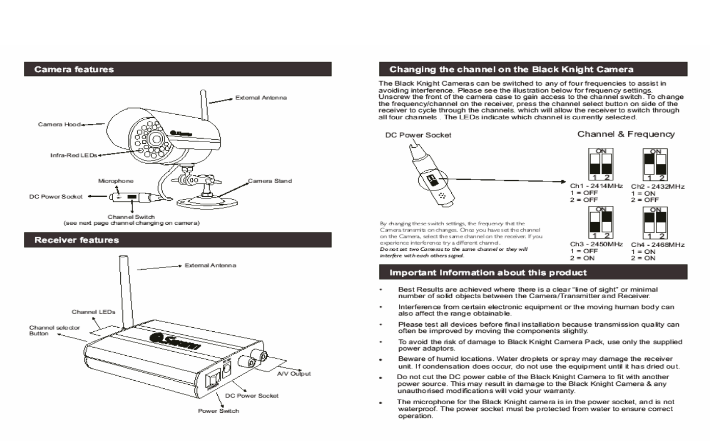 Swann Communications BKY001 Black Knight Wireless Color Camera User Manual s