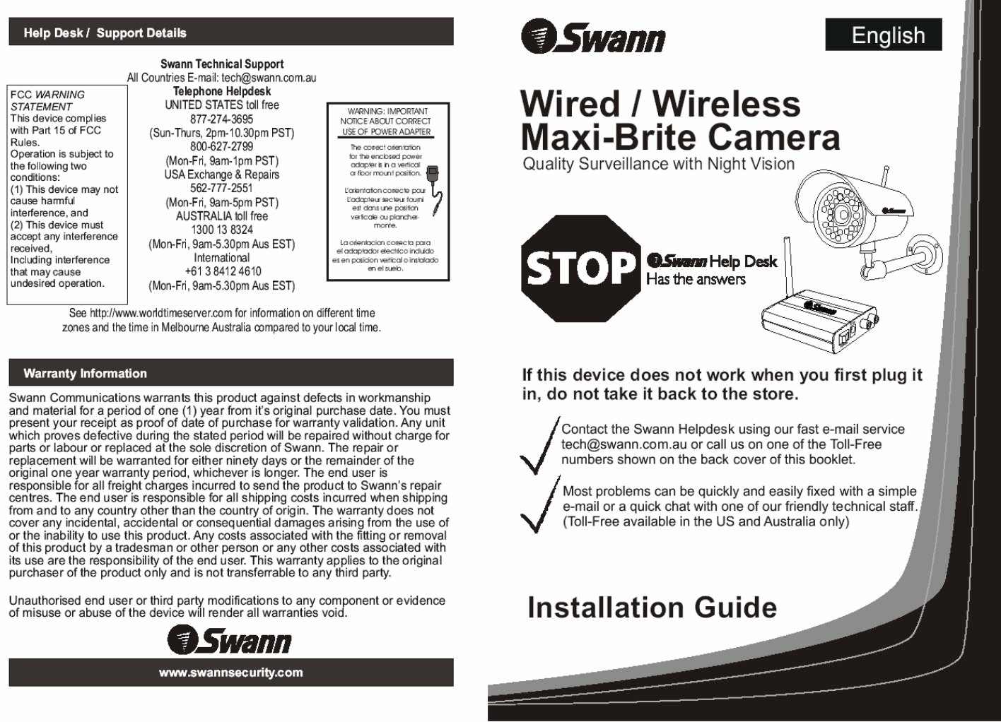 Swann Communications WMX001 Wired/Wireless Maxi-Brite Camera User Manual 1