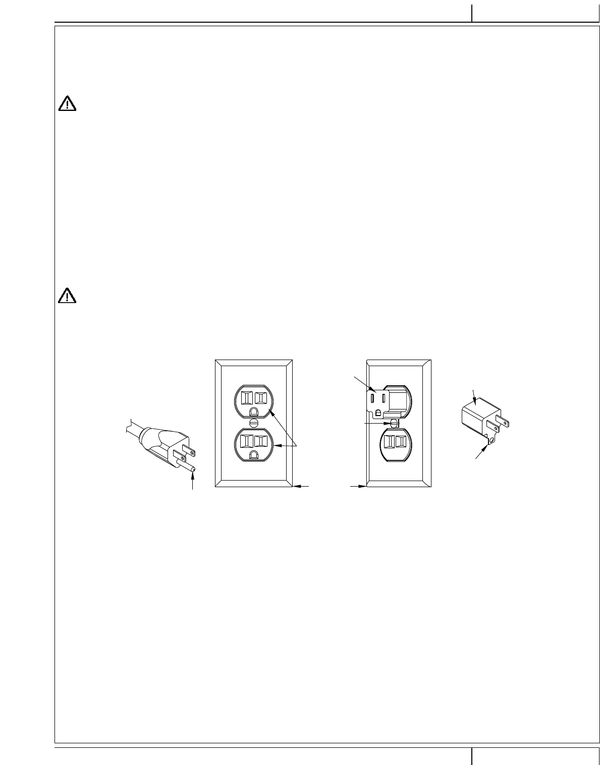aucun fi l n’est dénudé dans le cordon ou la prise, et la broche de terre n’est pas endommagée ou absente. Réparez ou remplacez immédiatement