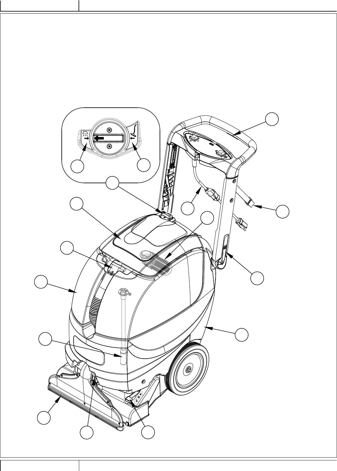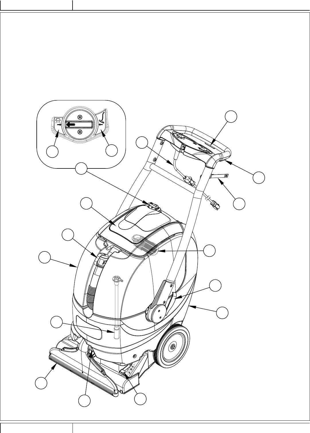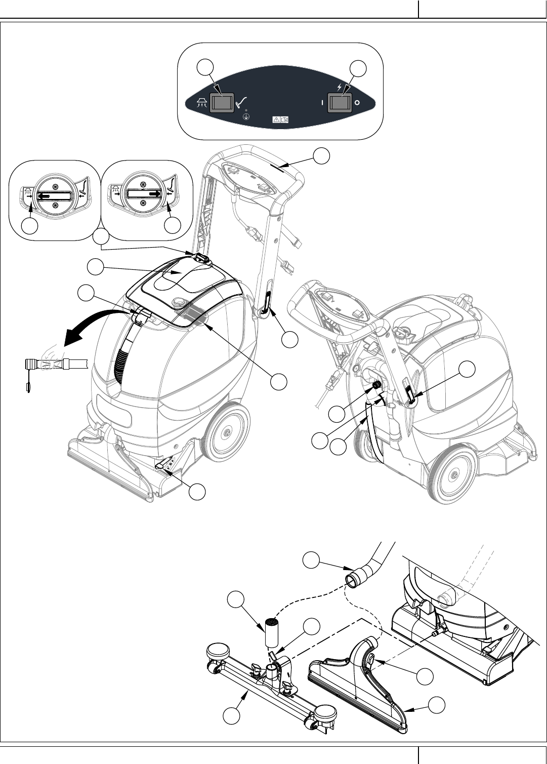 Le disjoncteur (26) se trouve sur le panneau de commande ; il protège le circuit électrique et le moteur de la brosse contre les dommages provoqués