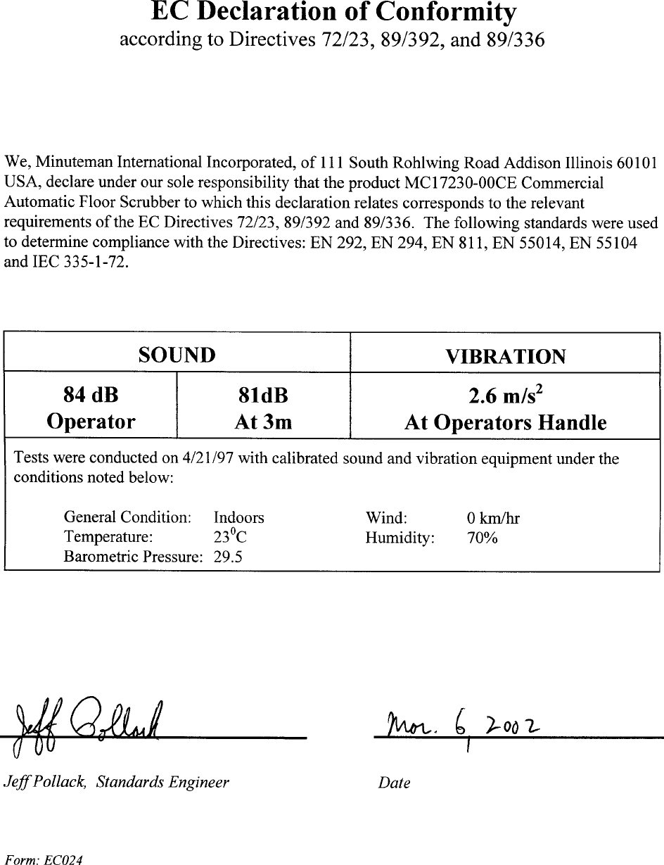 or guarantees of their manufacturers. Please contact Minuteman International, Inc. for procedures in warranty claims against