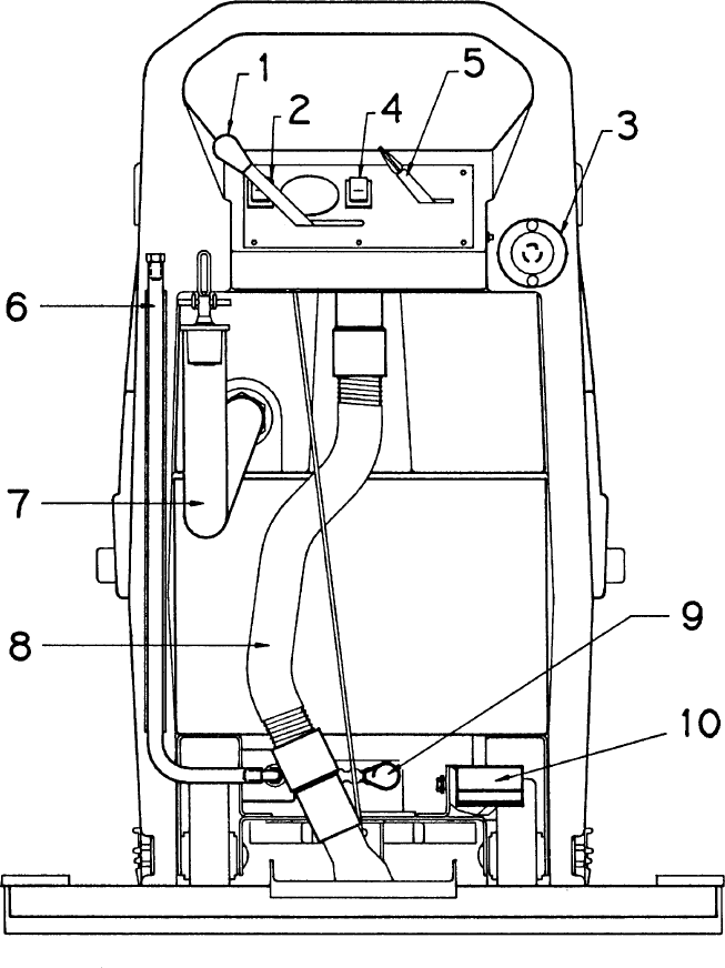 1. Squeegee left lever 6. Drain hose for clean solution tank