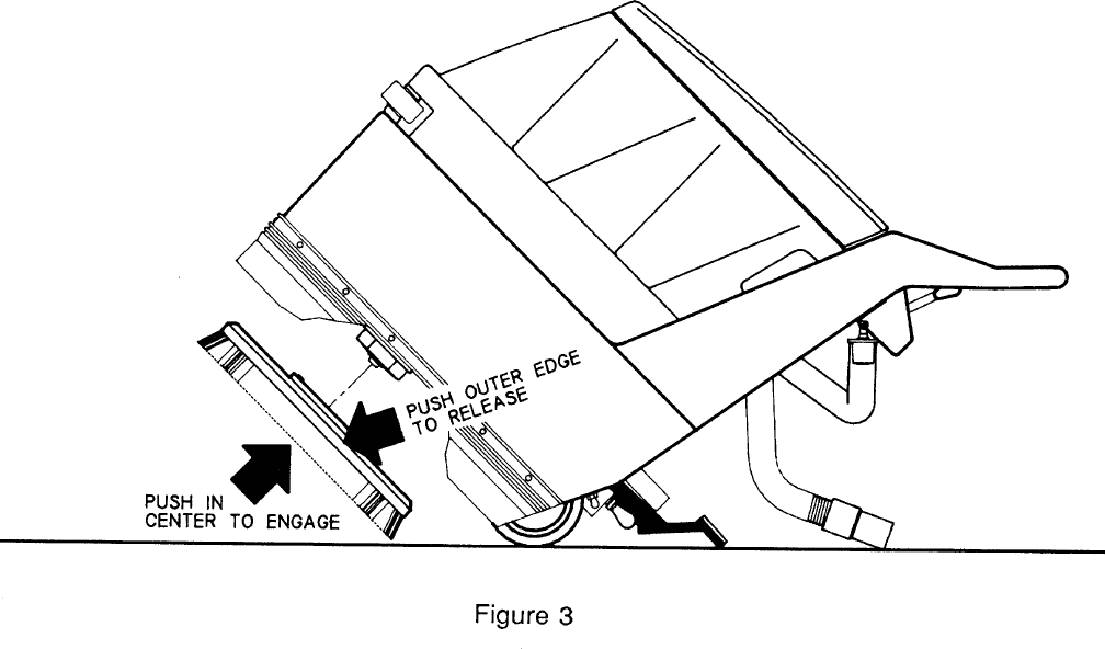 Tilt machine as shown (figure 3) until machine rests on foot pedal.