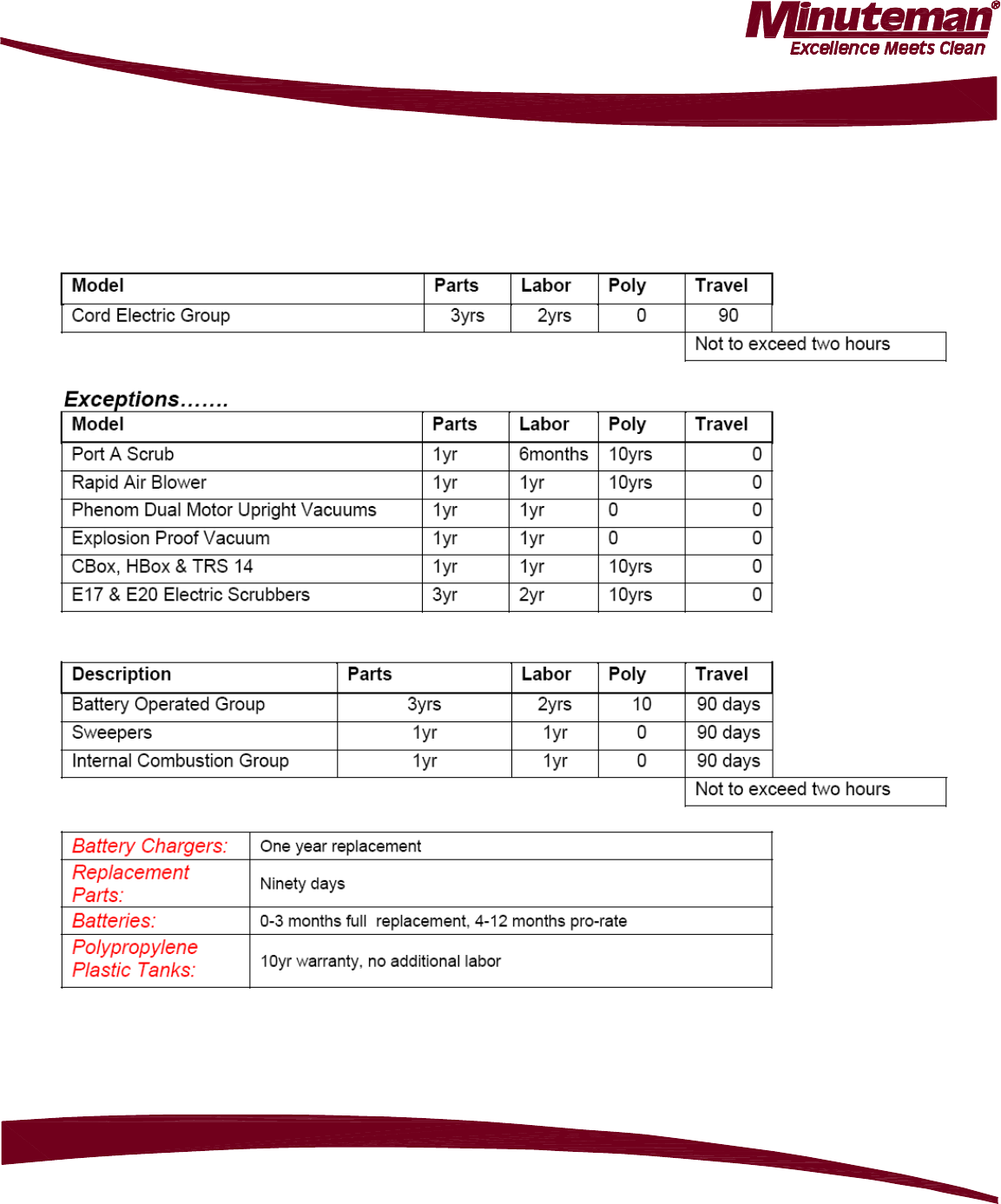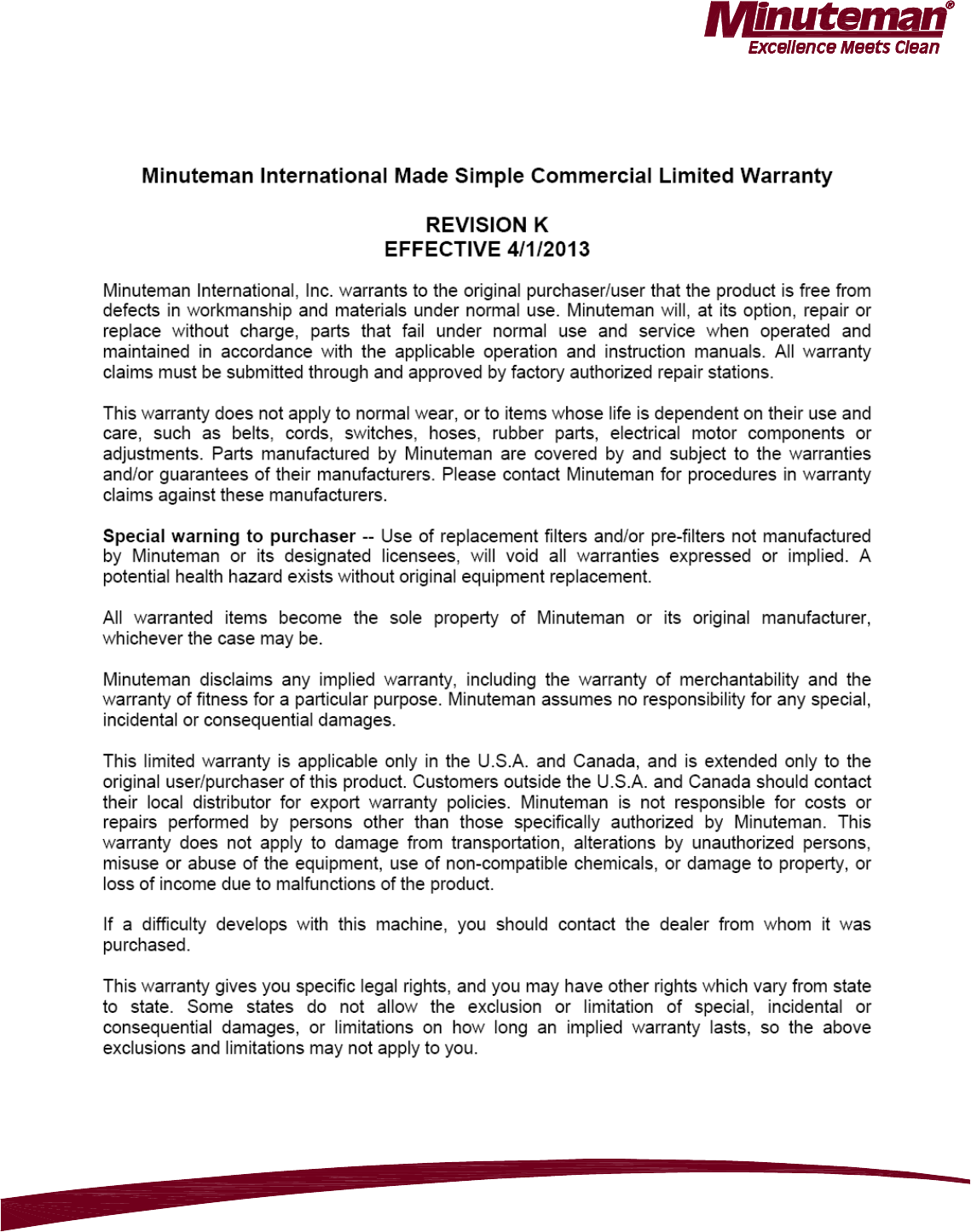 Minuteman Warranty - Continued ....................................................................................................... 29