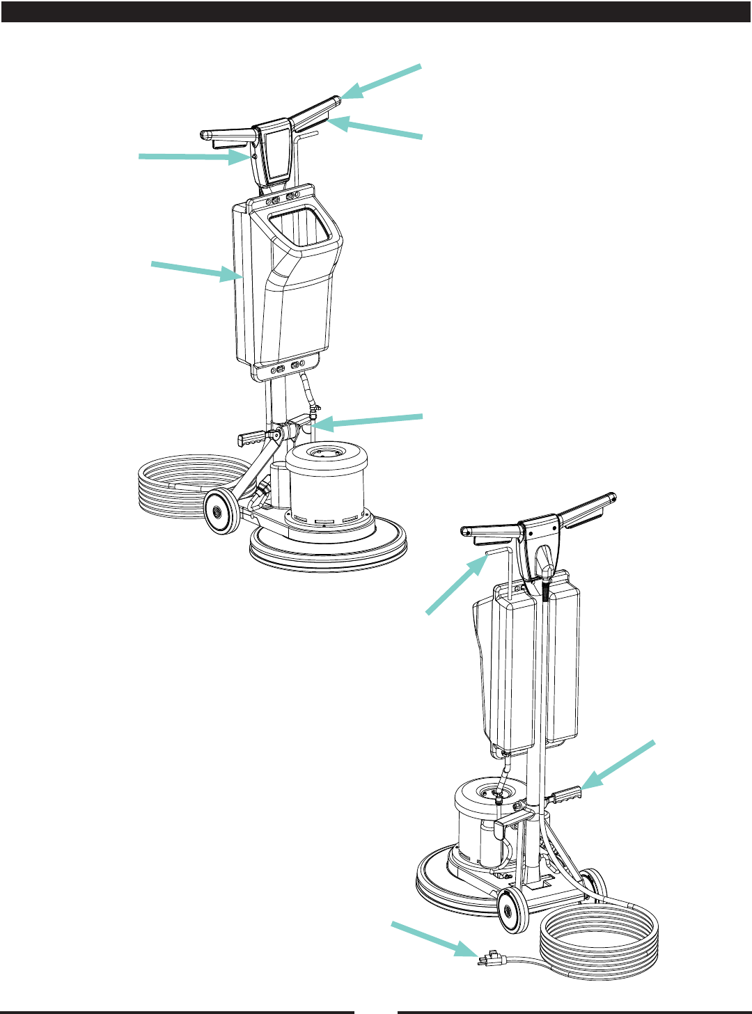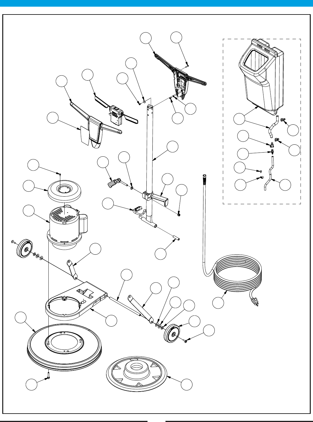 characteristics (cords, motor brushes, wheels, pad holder, skirt,