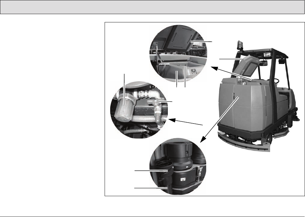 • Dead weight of the scrubber-drier