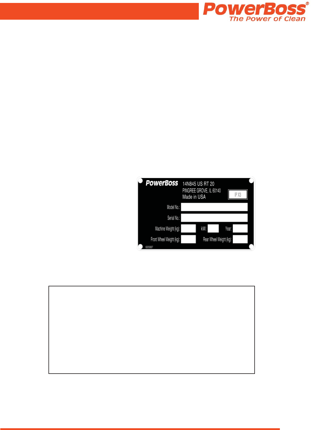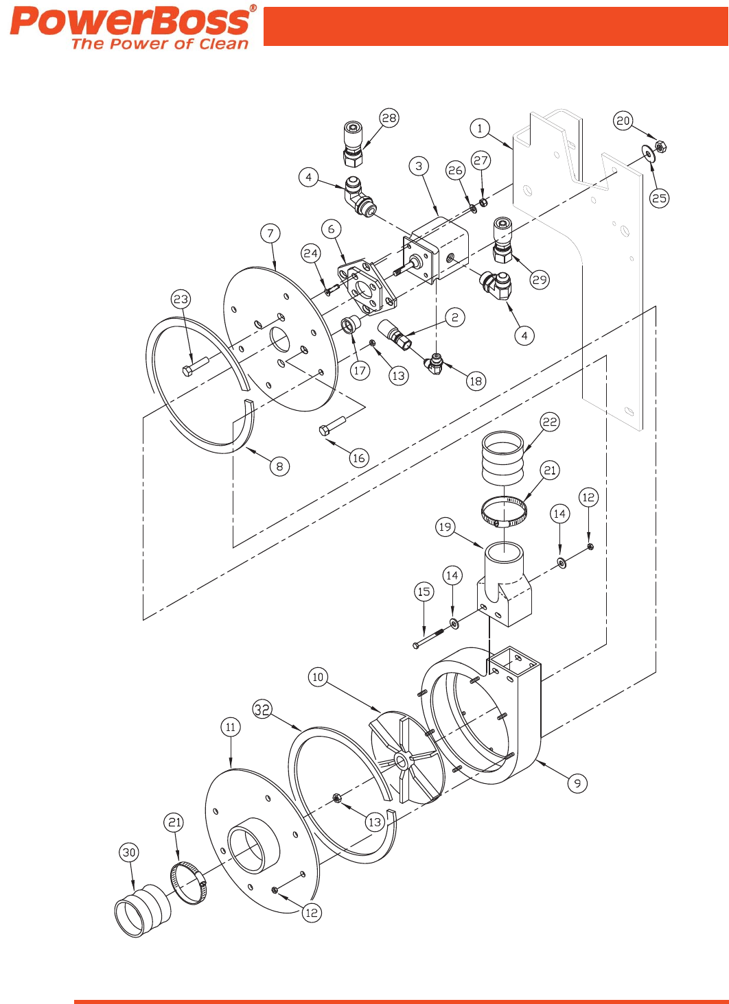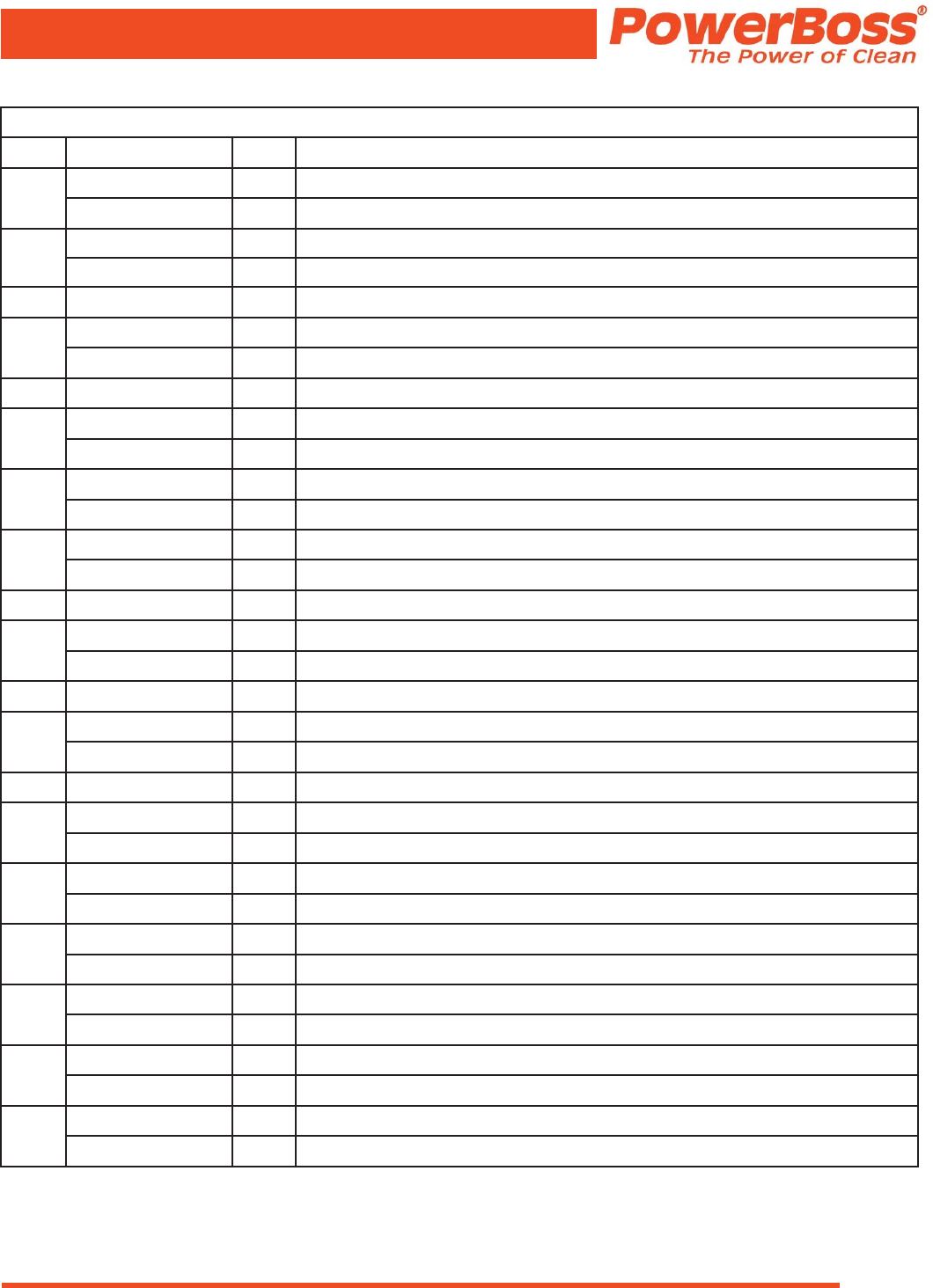 Parts may be ordered by phone,fax or email from any PowerBoss® parts and service center. Before