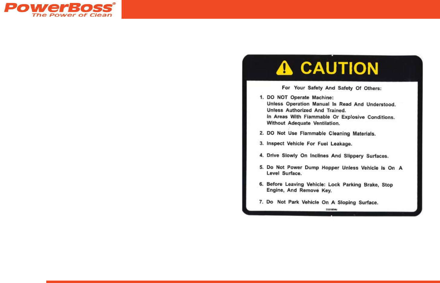 Special warning to purchaser -- Use of replacement parts not manufactured by PowerBoss or its designated licensees, will void all warranties